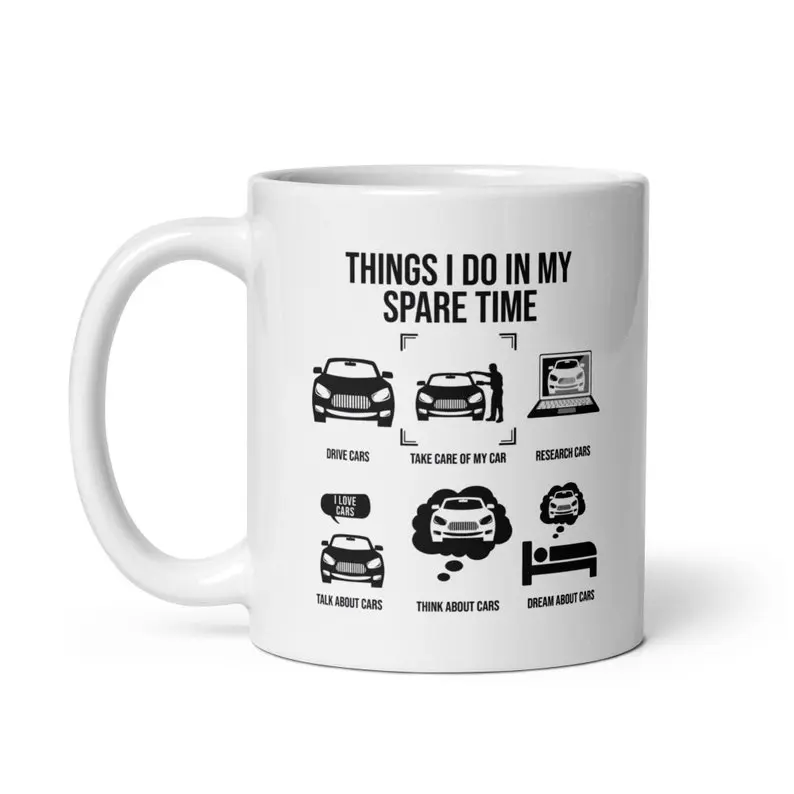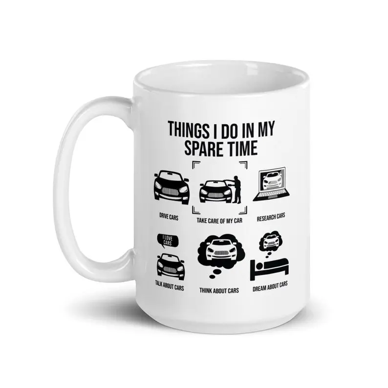 Things I Do In My Spare Time Funny Car Garage Themed Coffee Mug, Great Gift for Men Women New Drivers Boyfriend Dad Husband Car Lovers Mechanic Collector