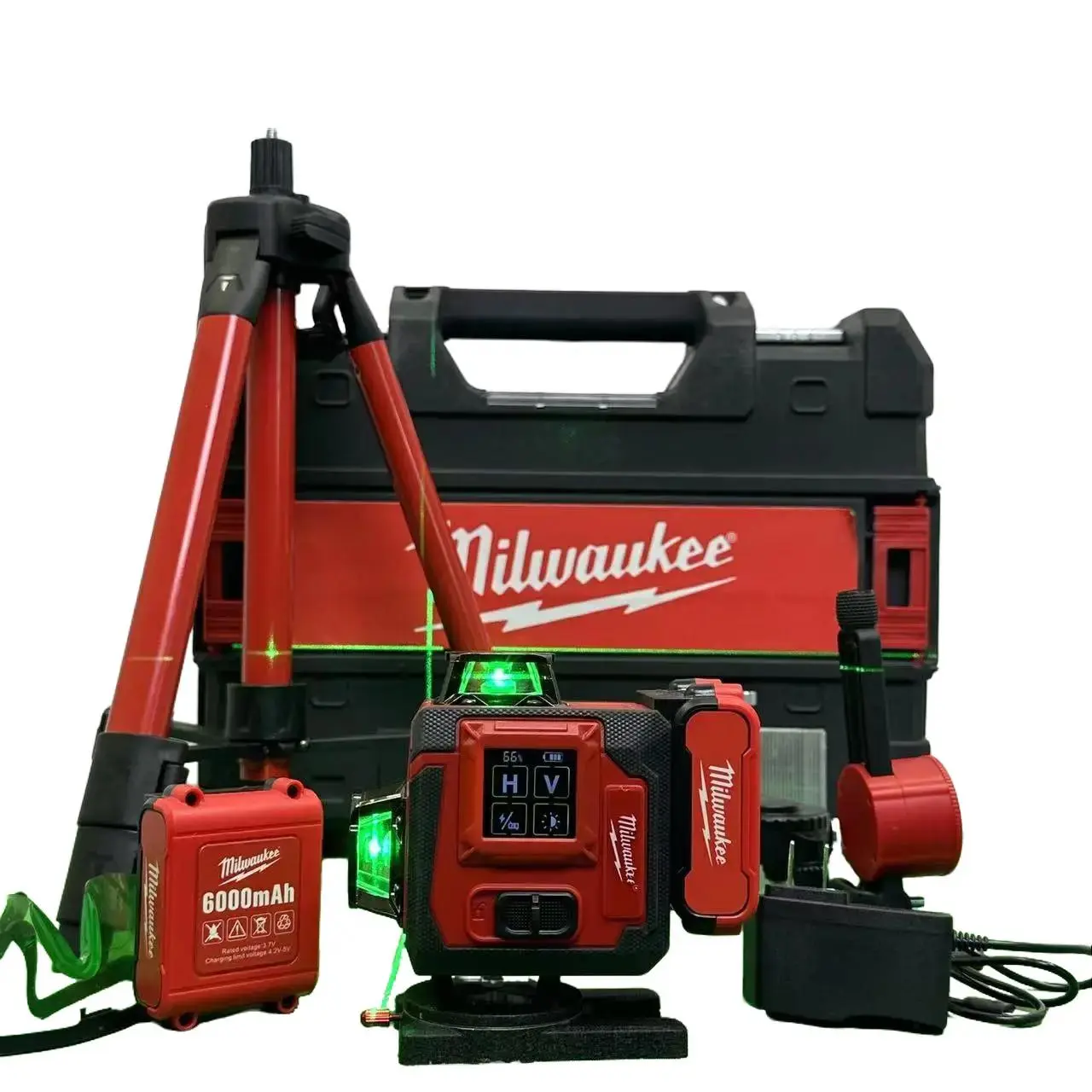 The Milwaukee 16-Line Green Laser Level is perfect for tile installation and ceiling alignment. It features a 4x360° self-leveling kit, ensuring precision in construction. The included tripod and 6000mAh battery provide convenience and power. Ideal for digital construction tasks, this level offers reliable performance.