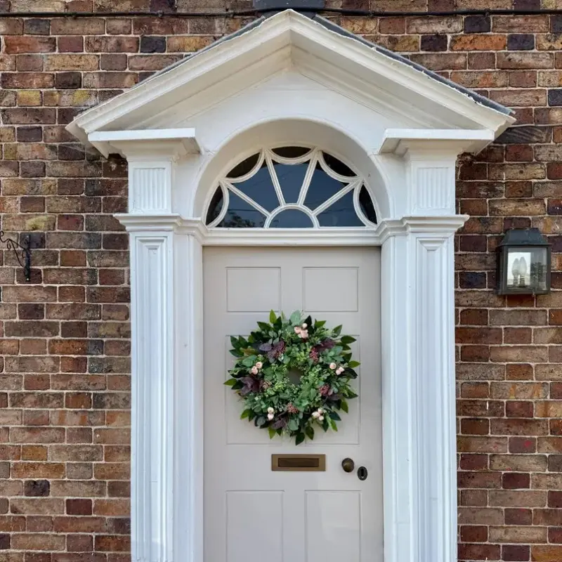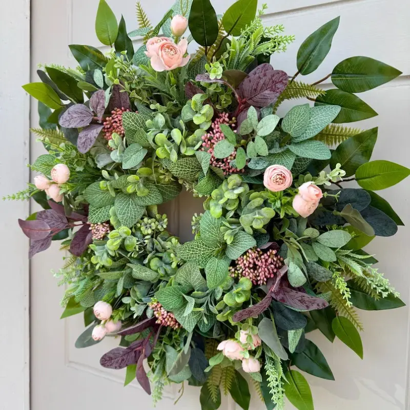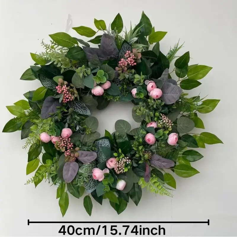Summer Greenery Wreath with Berries and Fern Leaves, Handmade Farmhouse Door Wreath, Indoor Outdoor Wall Window Decor, All-Season Hanging Decoration