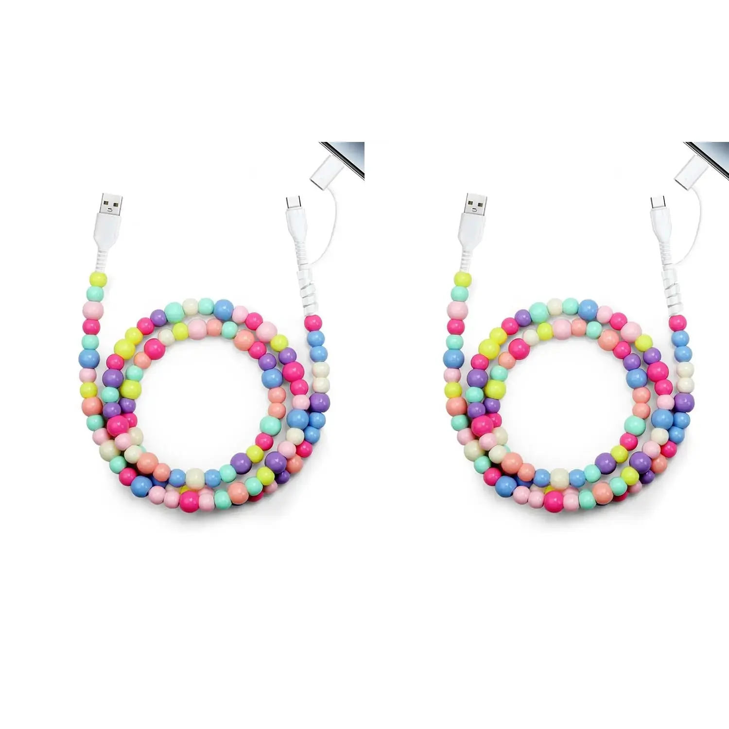 ·Multi purpose 2-in-1 Function: This innovative creative bead 2-in-1 data cable allows you to easily switch between USB and USB-C connections. This multifunctional cable allows you to charge and transfer data between various devices, simplifying your charging settings and suitable for multiple devices.