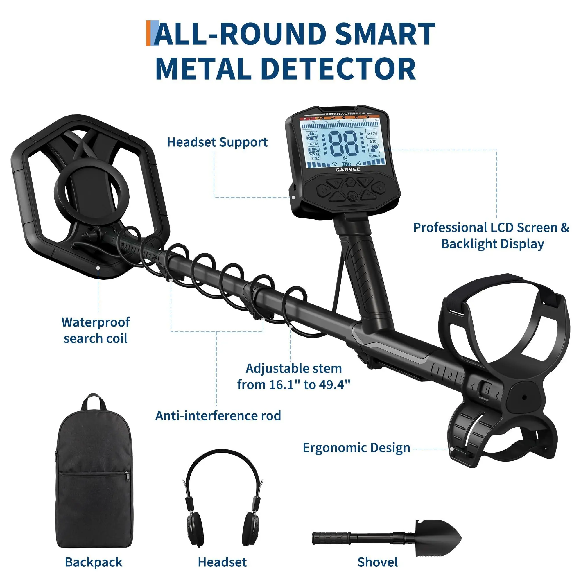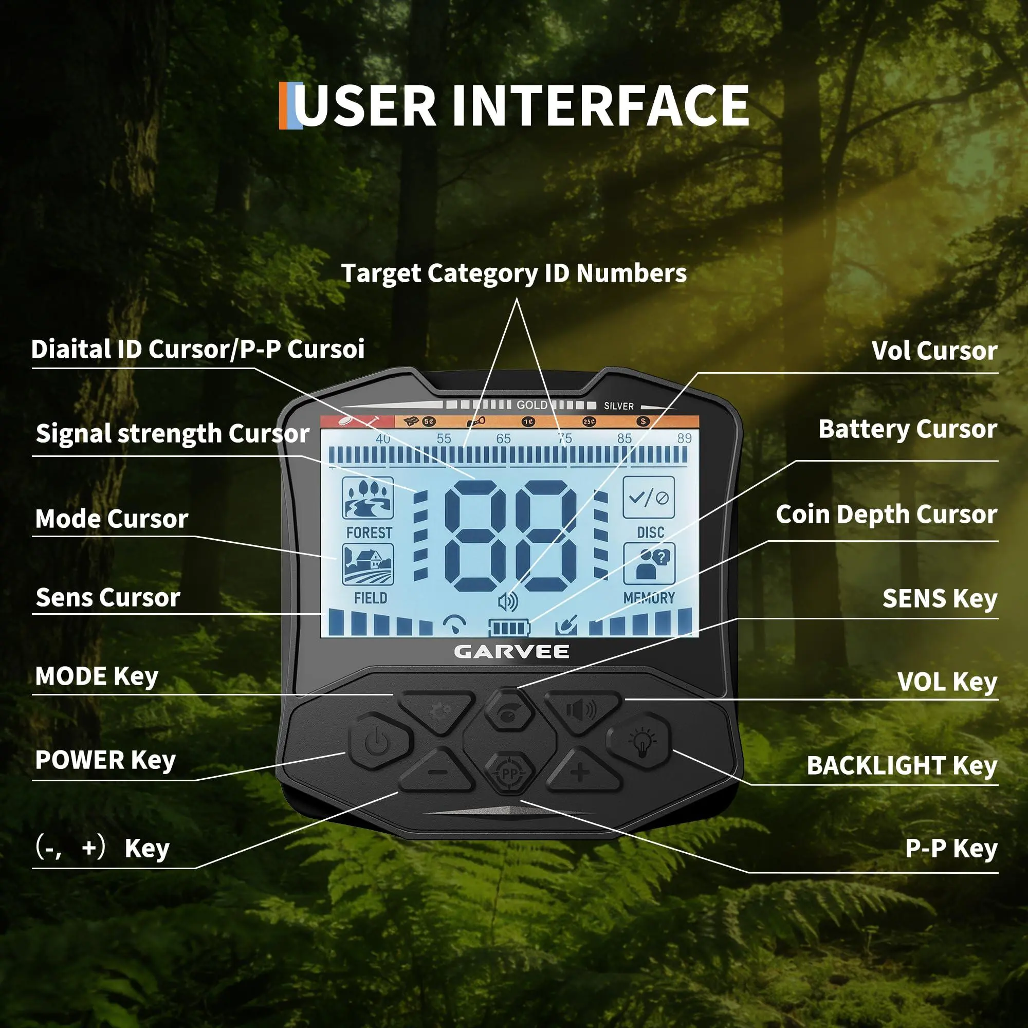 ⚙️【Clear Backlit LCD for Any Lighting Condition】The large backlit screen displays goal ID, depth, sensitivity, and battery status clearly, allowing easy reading in low-light environments for extended detecting sessions.
