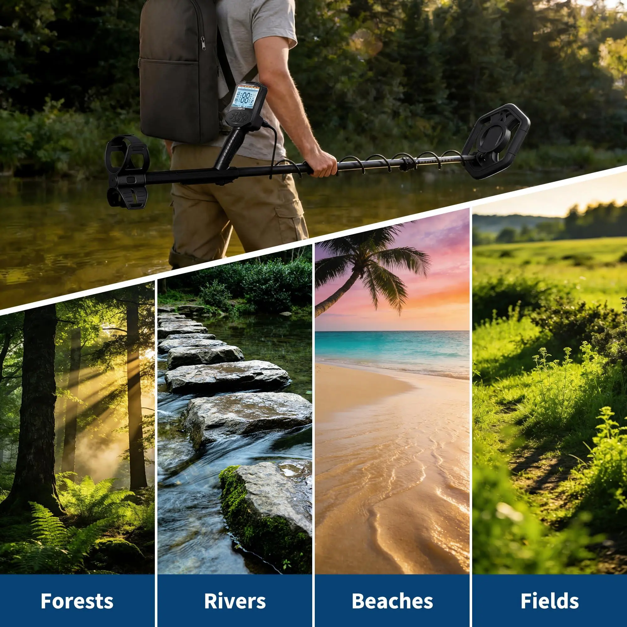 ⚙️【Waterproof Coil for Beach & Shallow Water Use】Featuring a waterproof search coil, this detector performs reliably on wet sand, beaches, and shallow water environments, making it great for seaside treasure hunting and riverbank exploration (control box not waterproof).