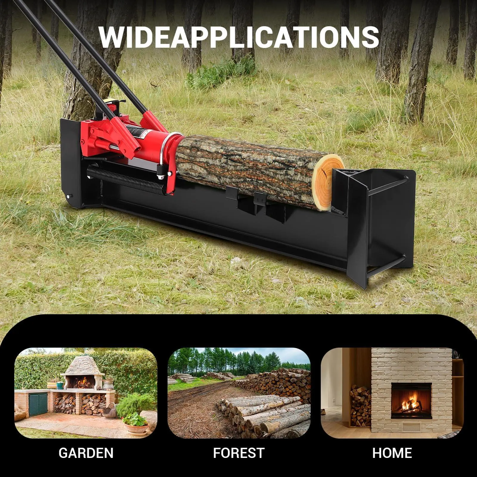 [Environmentally Friendly] This manual wood splitter requires no gasoline or electricity, making it clean and pollution-free. Its powerful, fully manual hydraulic power ensures effortless wood splitting, turning wood splitting into a fun family activity.