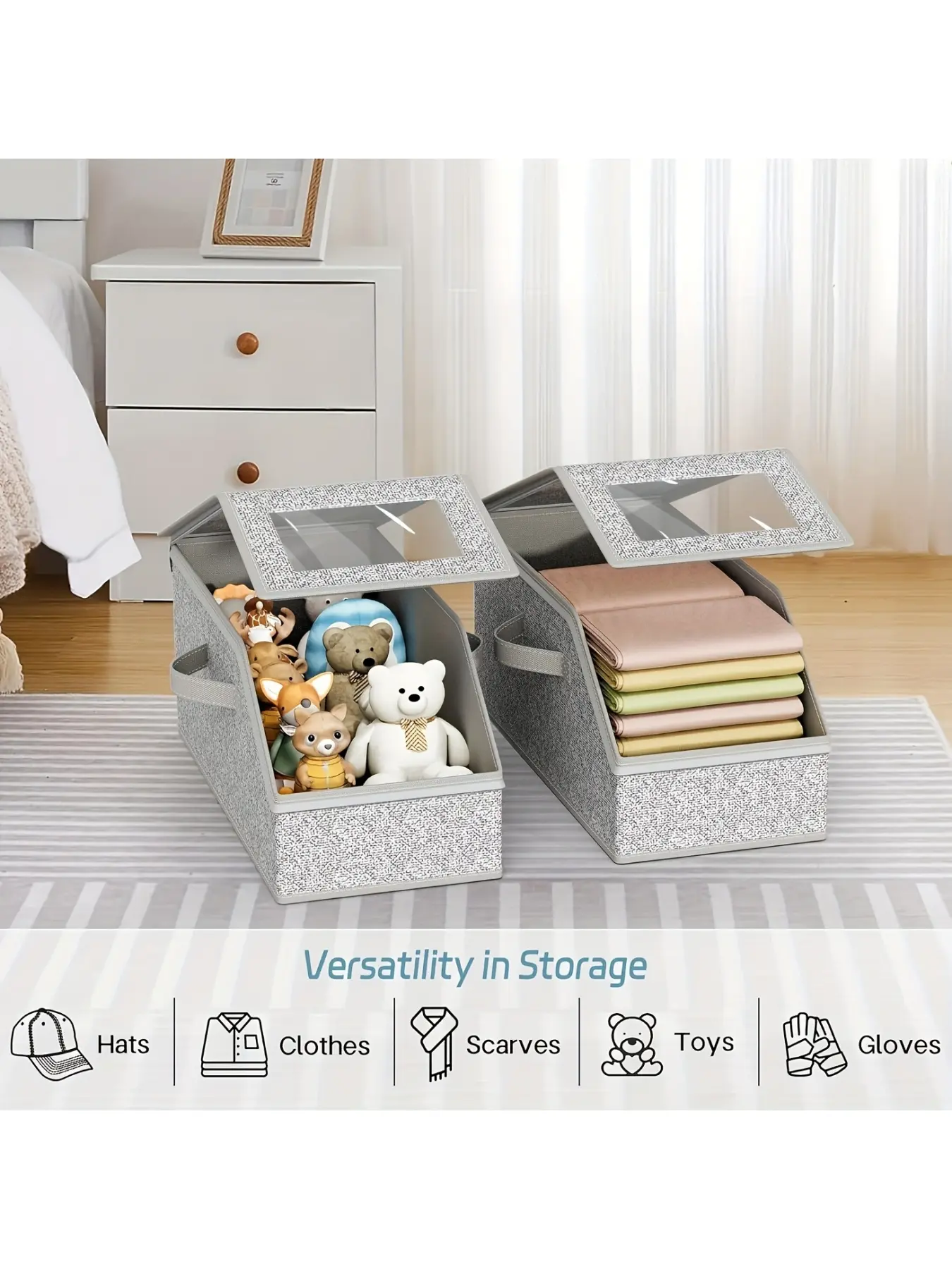2 Pcs Large Capacity Foldable Storage Boxes with Dual Handles, Flip-Top Organizer Bins, Space-Saving, Sturdy Construction, Perfect for Storing Various Items