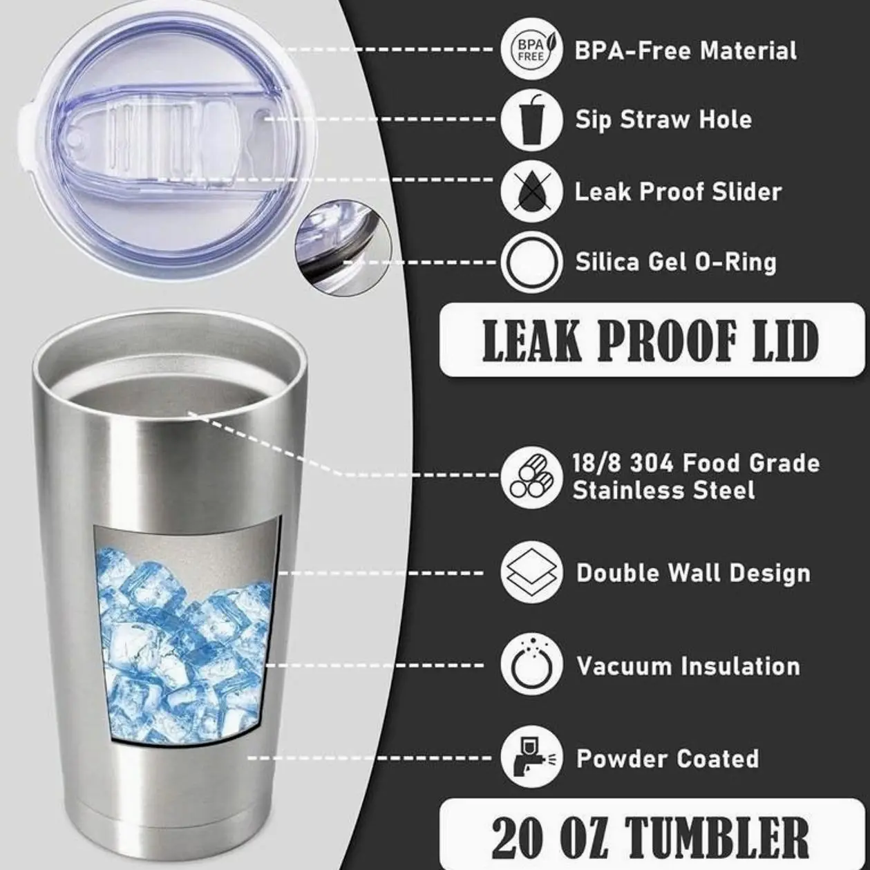 * Food Grade Stainless Steel, Double Insulated (20 oz)