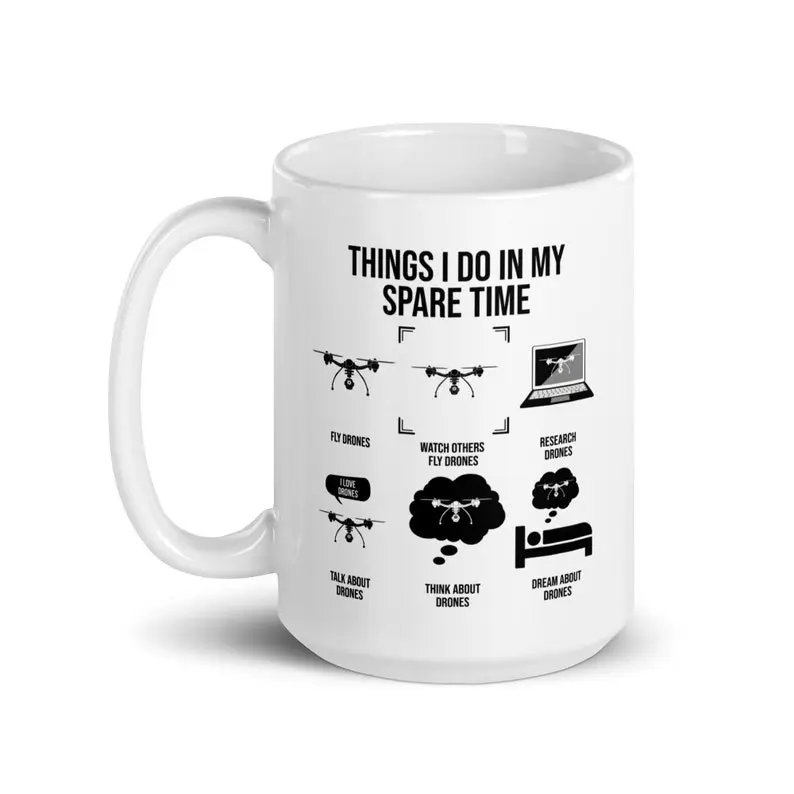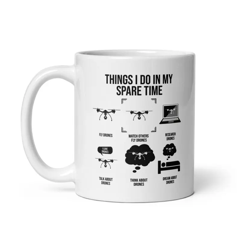 Funny Drone Pilot Coffee Mug Things I Do In My Spare Time Novelty Ceramic Tea Cup Drone Enthusiast Hobbyist Gift Suitable for Home Office Kitchen Daily Use Drinkware