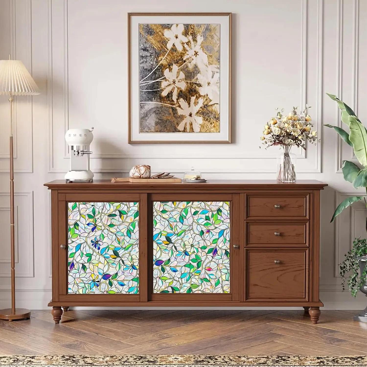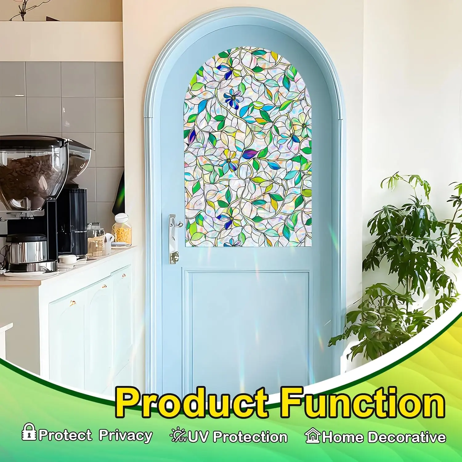 Stained Glass Window Film, Rainbow Privacy, One Way Decorative Tint, Static Cling, Renter Friendly for Home Bathroom Door