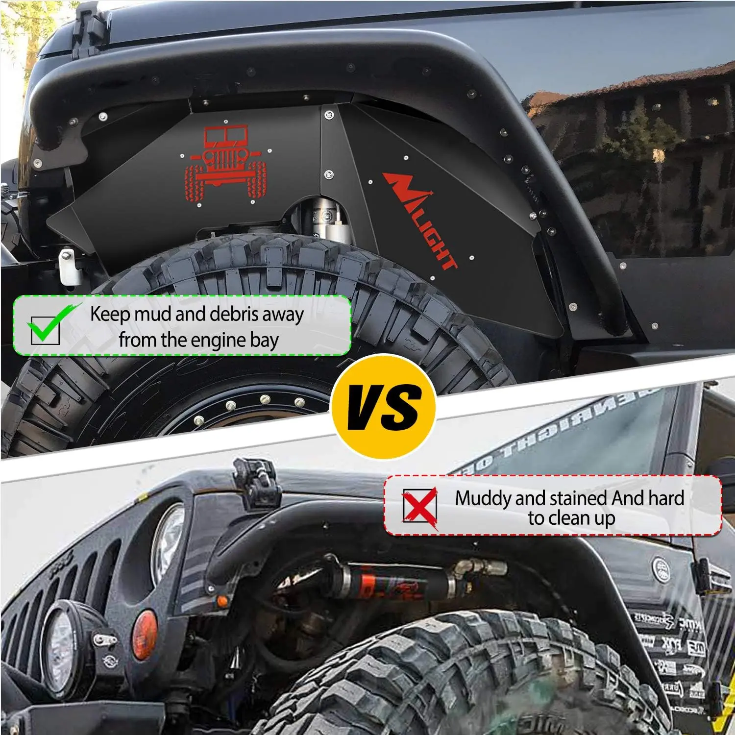 ·【Fitment】 - Nilight inner fender guards are compatible with 2007-2018 Wrangler JK & JKU (4-Door/2-Door).