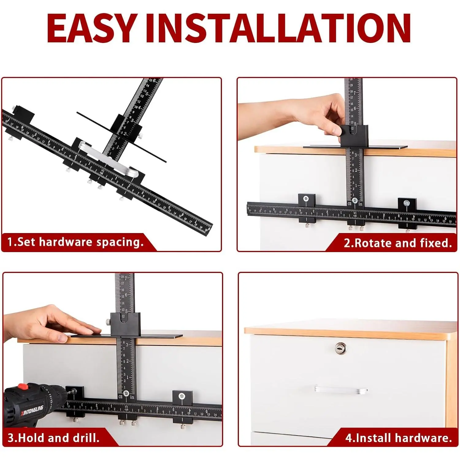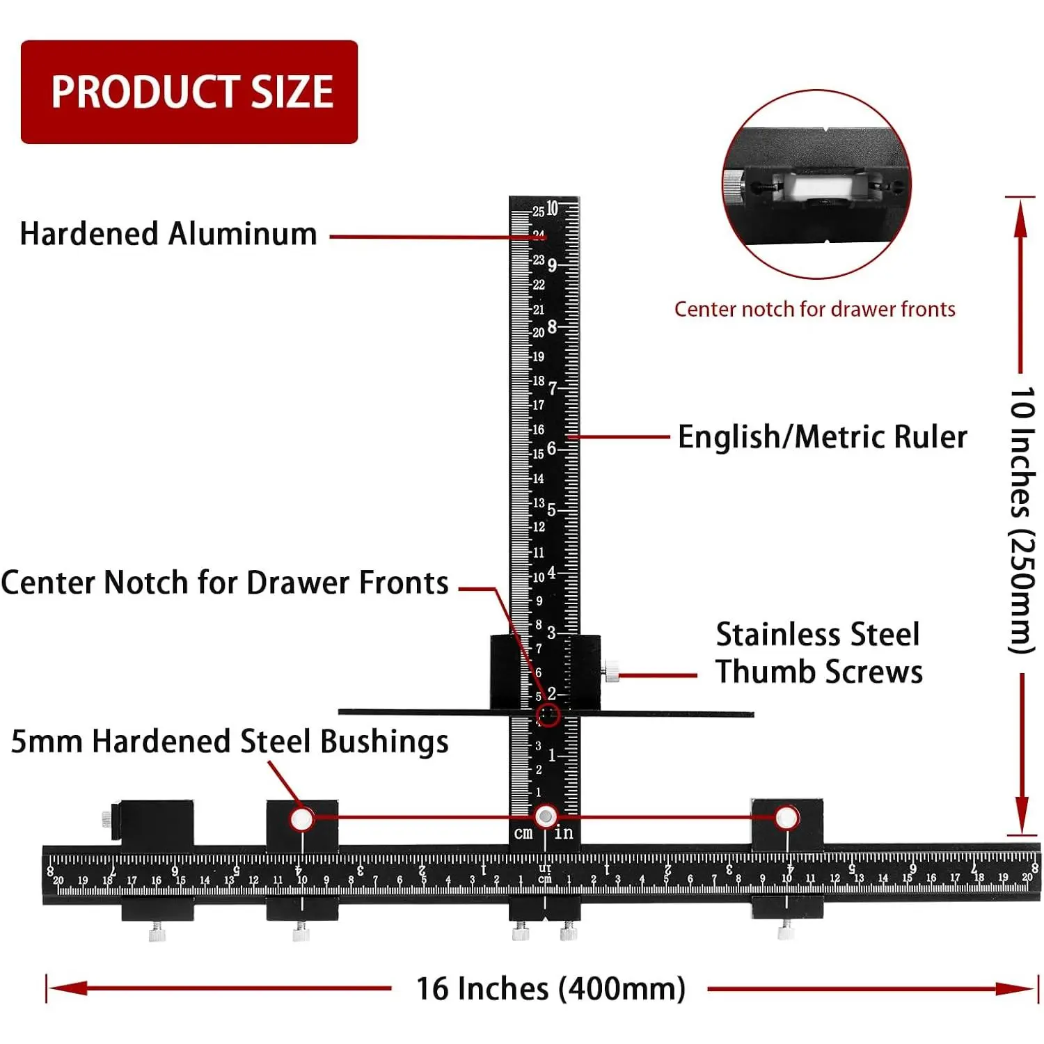 Cabinet Hardware Jig, Precision All Aluminum Alloy Accurate Fast Installation Cabinet Hardware Pull Template Tool Set Cabinet Door Handle Jig for Handles and Pulls on Door Drawer/Cabinets