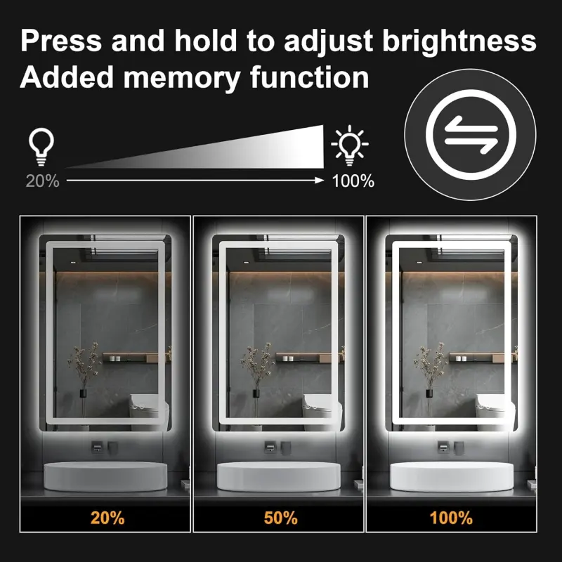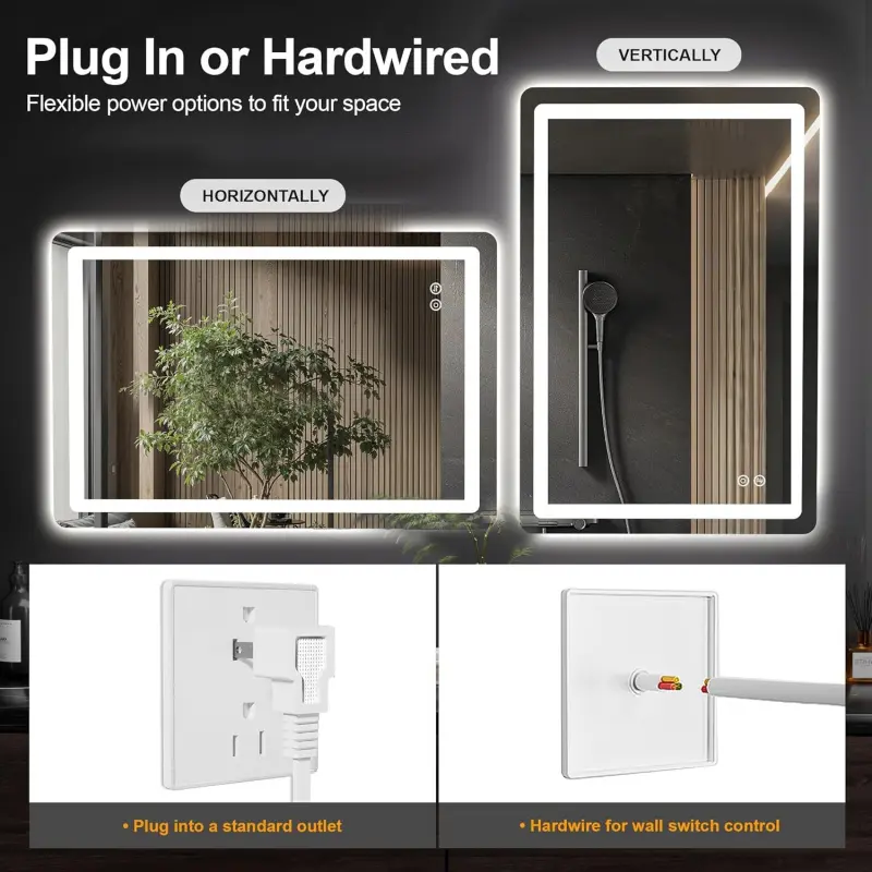 36"x24" LED Bathroom Vanity Mirror with Lights, Front and Backlit Wall Mirror, Anti Fog, Dimmable 3 Color Lighting, Memory Function, Shatterproof Glass, Plug in or H