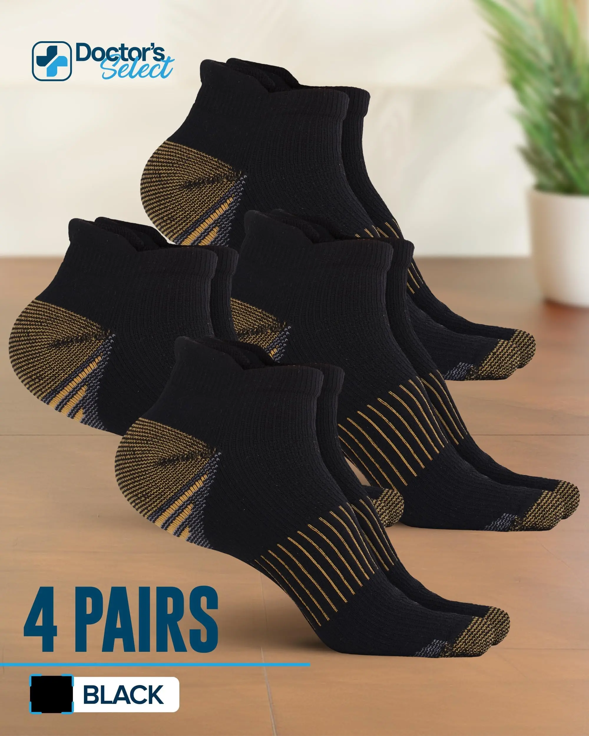 Doctor's Select Copper Compression Socks for Ankle Support - 4 Pairs for Women and Men