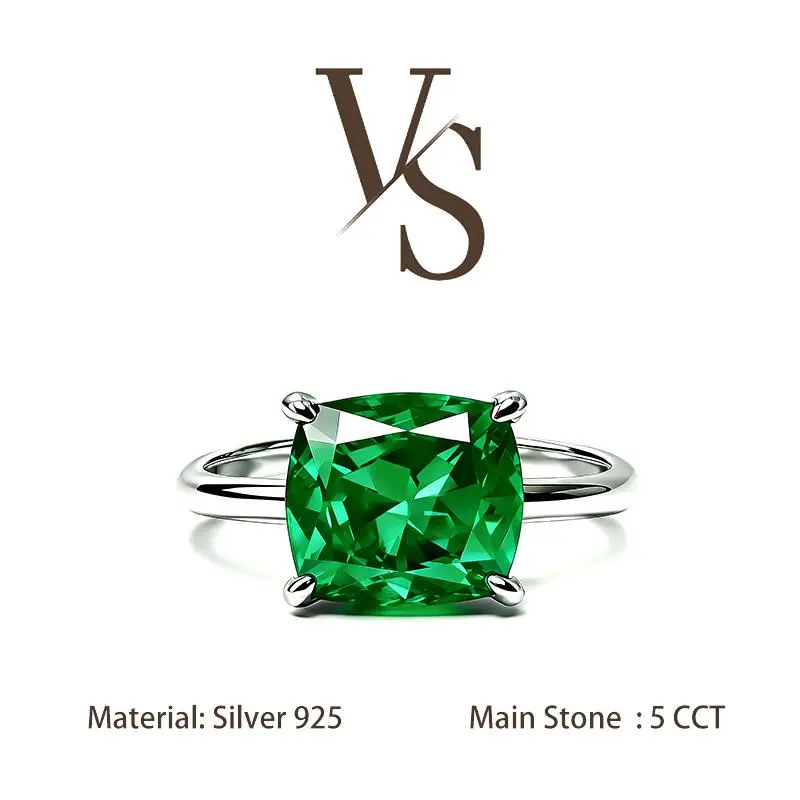 [Venus Jewelry] Lab Created Gemstone 5 CCT Cushion Cut Solitare Four Prong Design Solid Silver 925 Ring