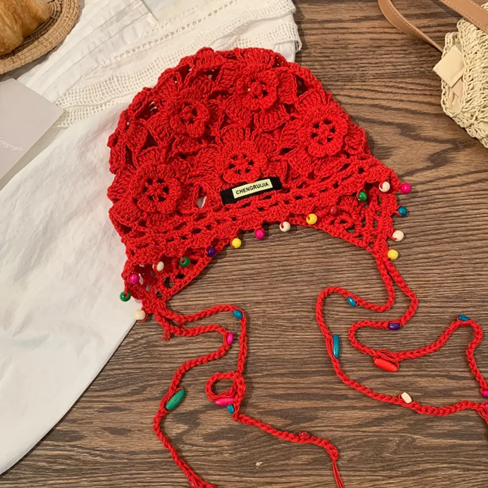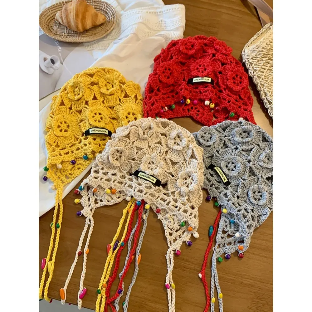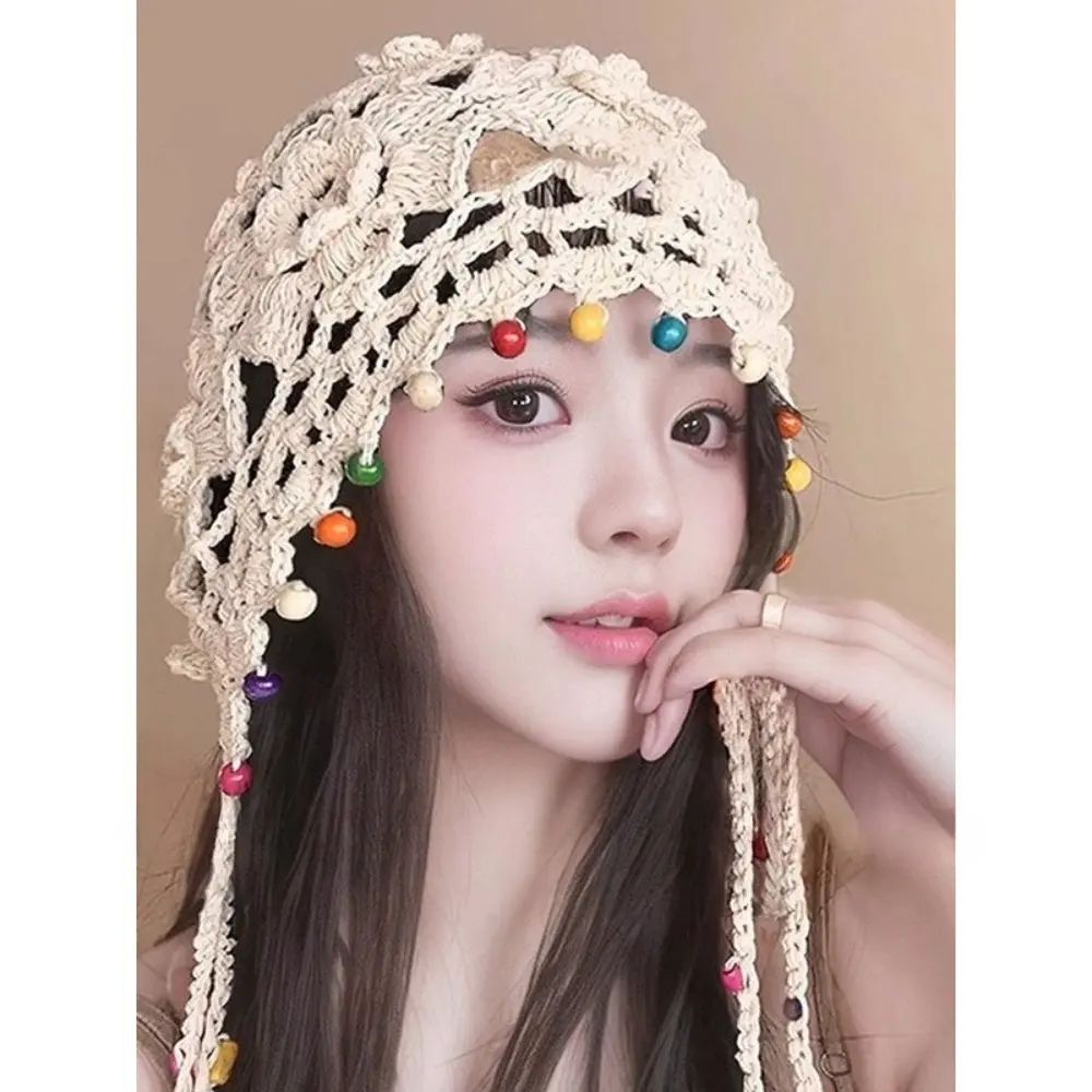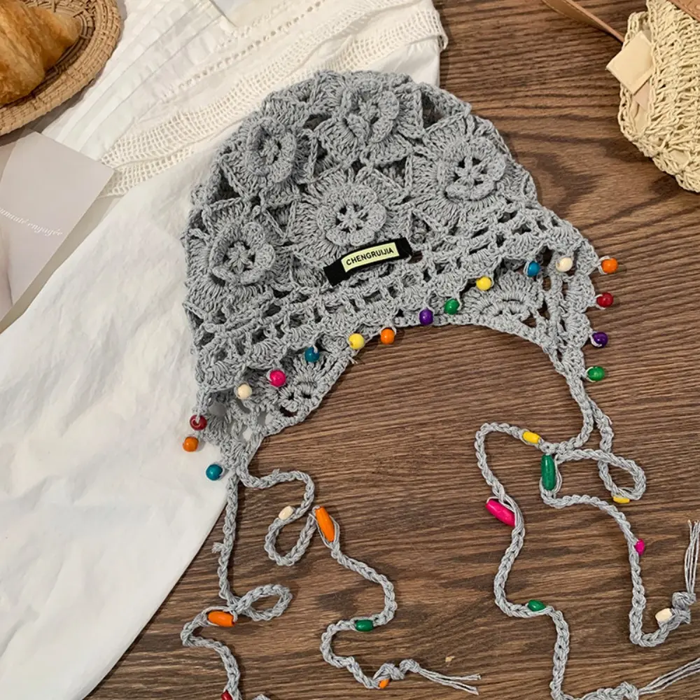·Handcrafted Elegance: This beanie is meticulously handmade with hollow knit crochet. It features colorful beads, floral accents, and tassels, exuding a unique vintage charm. Perfect for those who appreciate ethnic and artistic styles.
