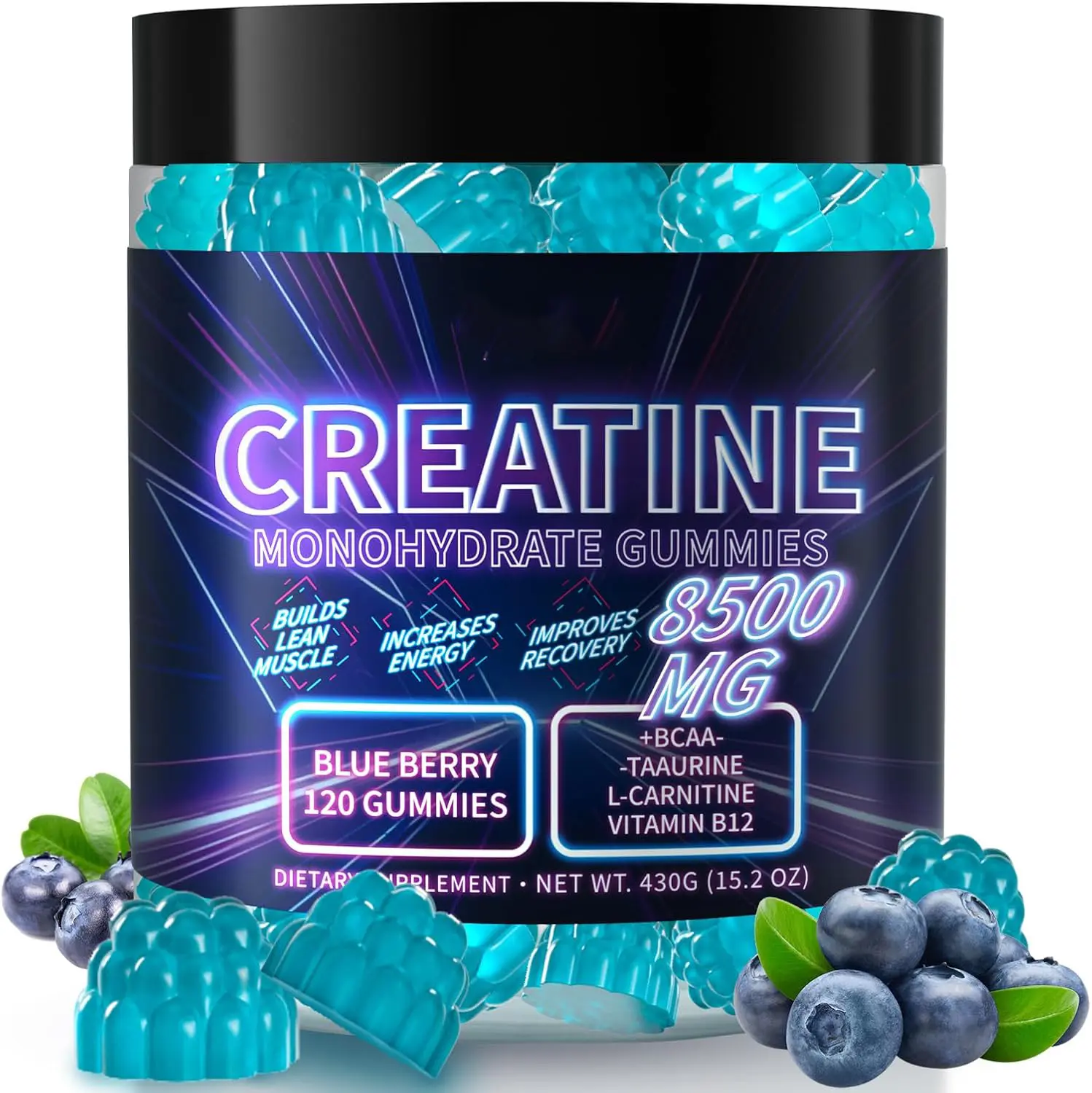 Creatine Monohydrate Gummies Complex 8500 MG for Men & Women, Creatine Monohydrate Supplement for Muscle Growth, Strength & Energy Support, Pre Workout Gummies 120 Count Blueberry