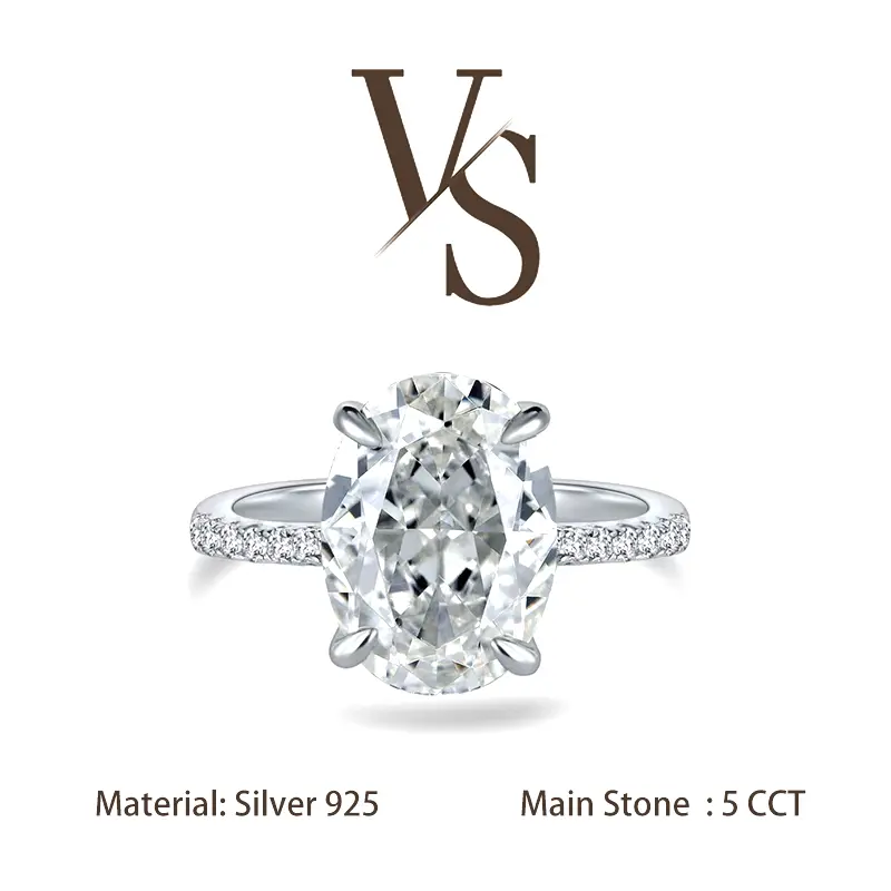 [Venus Jewelry] Lab Created Gemstone 5 CCT Oval Shape Regular Design VVS 1 D Color Solid Silver 925 Solitare Ring