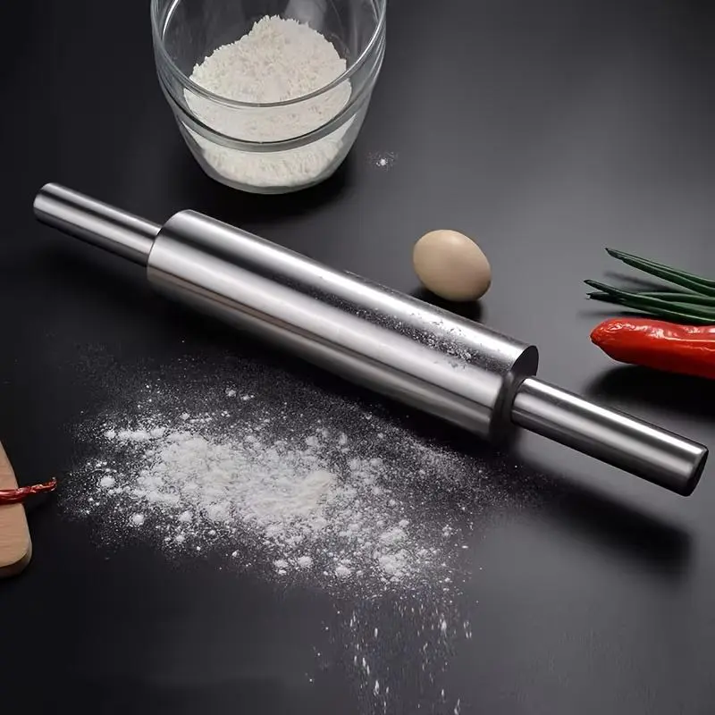 SHAON Stainless steel rolling pin with anti slip handle - professional dough roller - durable manual noodle press | suitable for pizza, cookies, pastries, pasta | easy to clean household baking artifact, Christmas and Halloween gifts