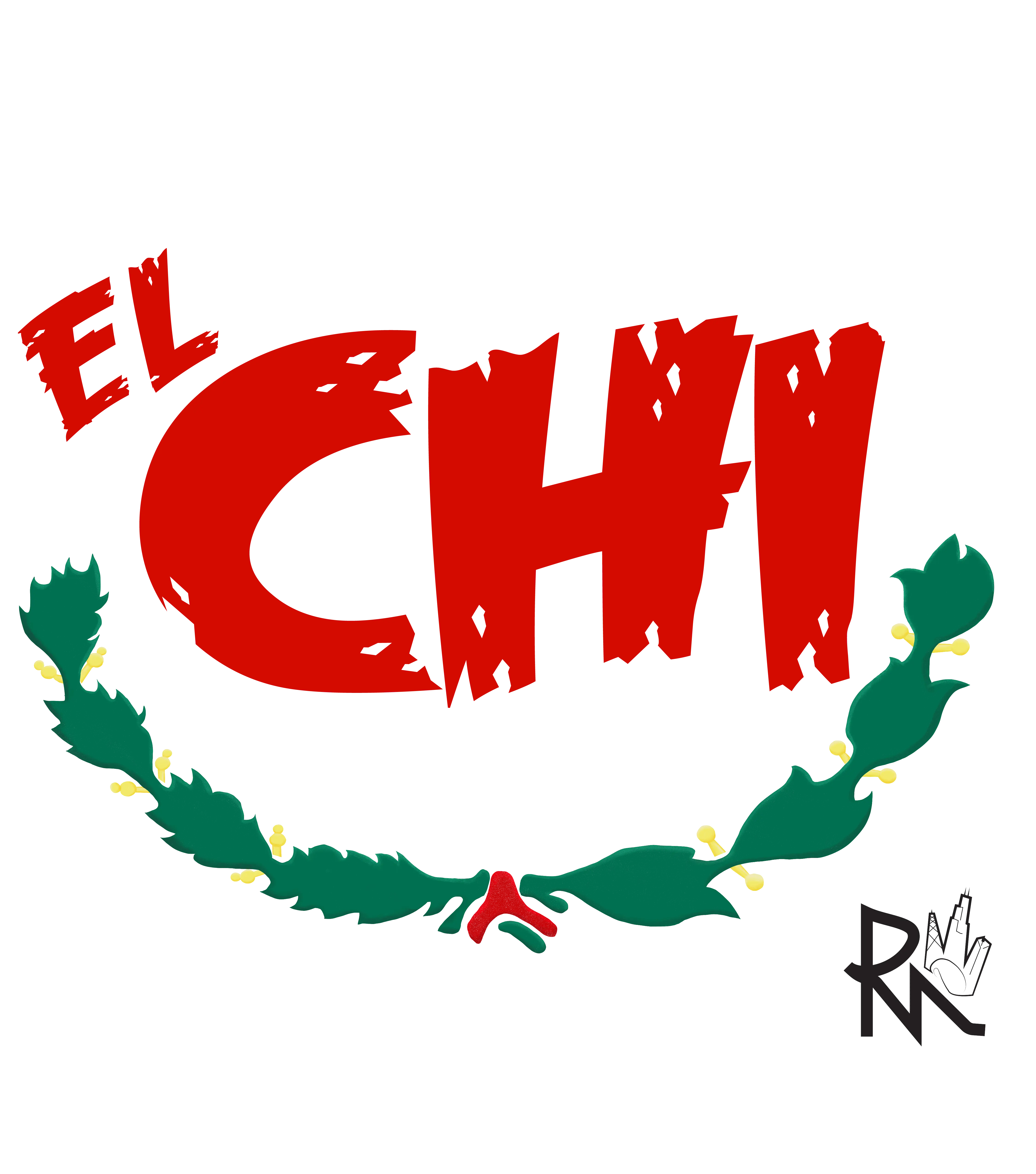This design blends Mexican heritage with Chicago presence in one clean statement. Bold red “CHI” lettering with “El” stamped above it, framed with classic green laurels. Simple structure. Loud meaning.