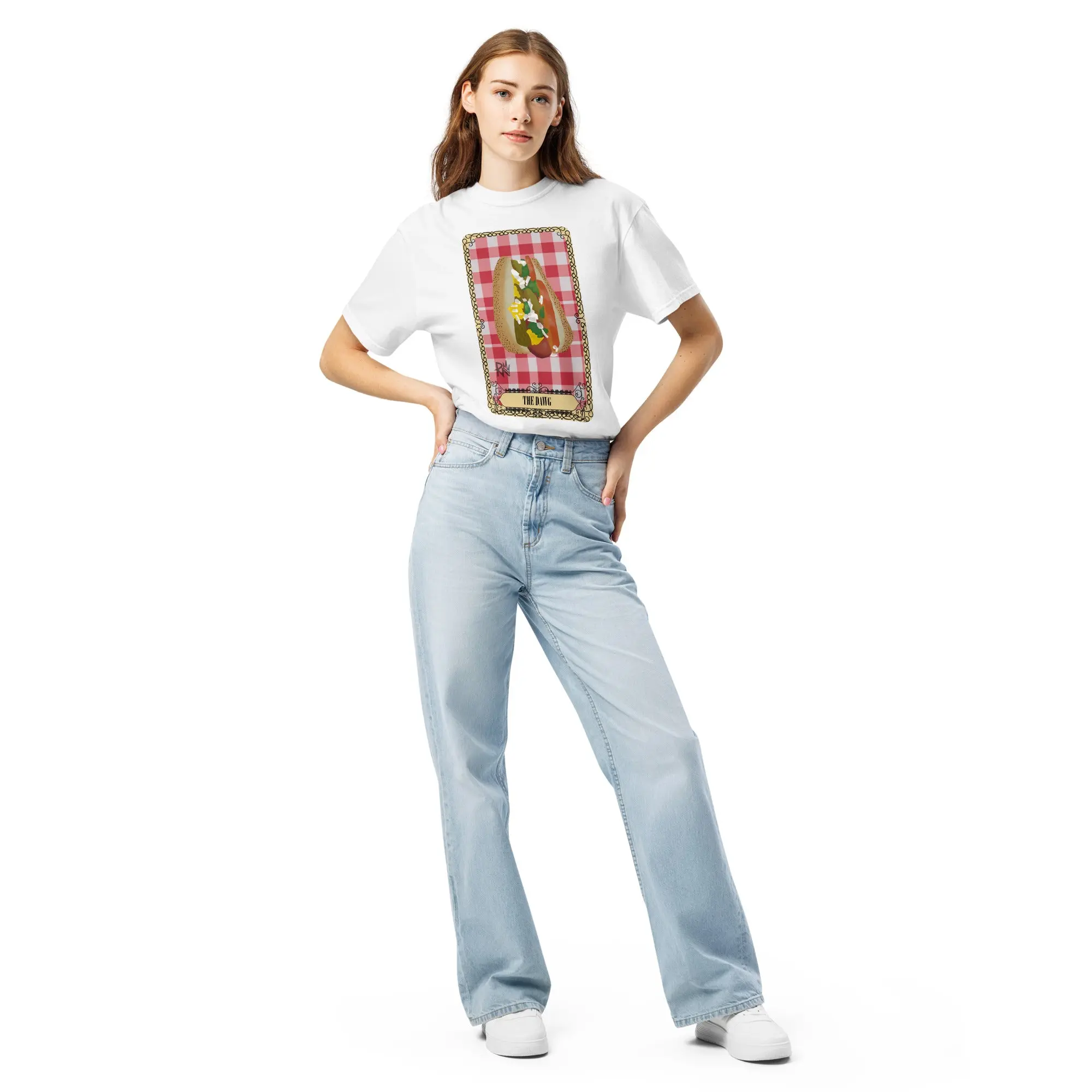 This Chicago style hot dog shirt turns the city’s most protected tradition into a tarot card pulled from a Chicago deck. All beef. Yellow mustard. Neon relish. Sport peppers. Pickle spear. Celery salt. Built the right way or not at all.