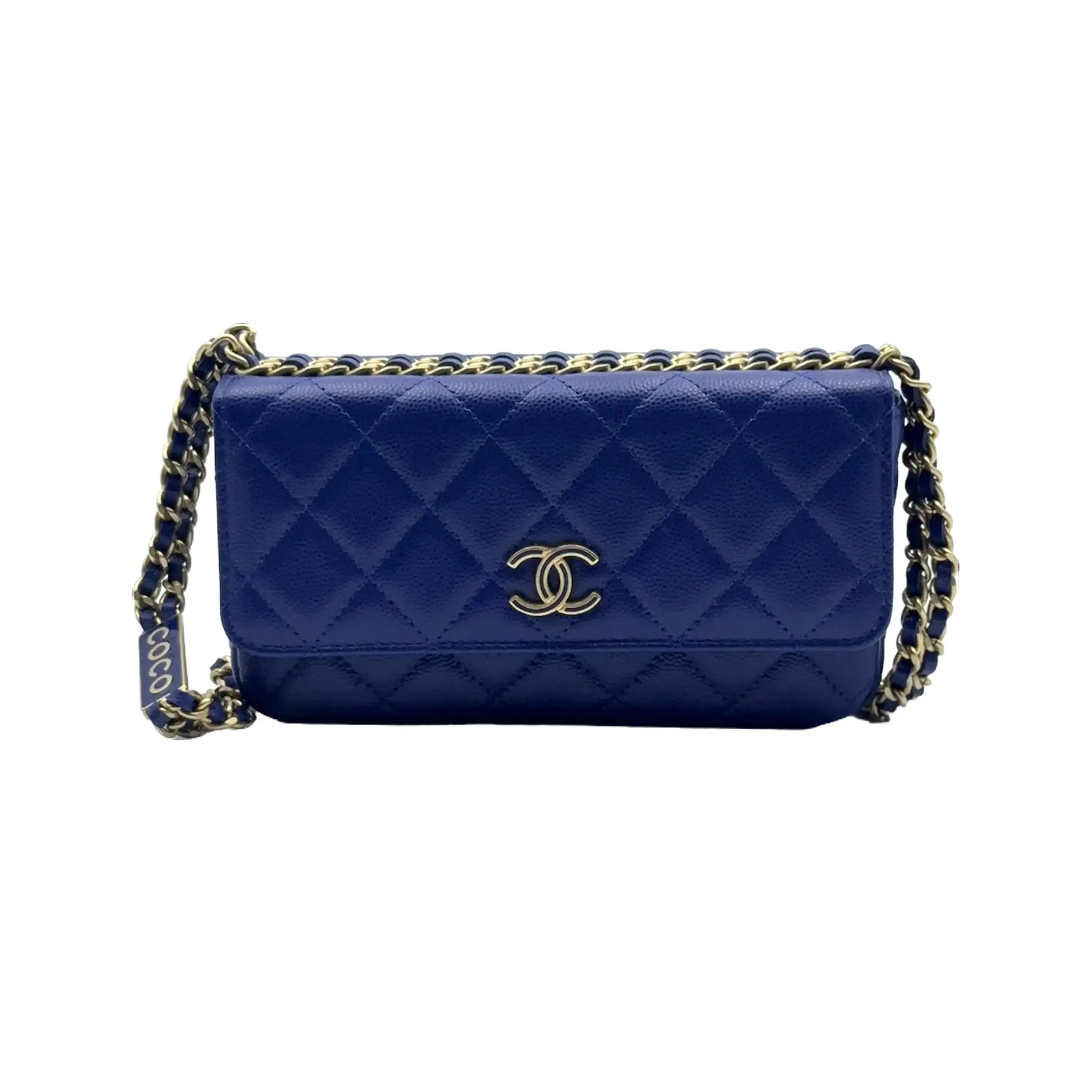 ✨ This clutch/wallet on chain features a dark blue caviar leather finish. The diamond pattern adds a touch of sophistication. Perfect for those who appreciate stylish accessories. The bag combines functionality with fashion, making it a versatile choice for various occasions.
