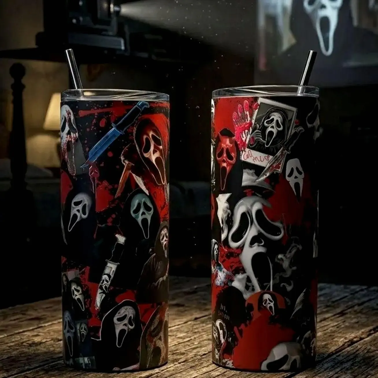 Scream Ghostface Horror Tumbler 40oz 20oz Bloody Scary Movie Cup 40 oz Tumbler With Handle, Tumbler 20oz No Handle, Gifts For Horror Fans