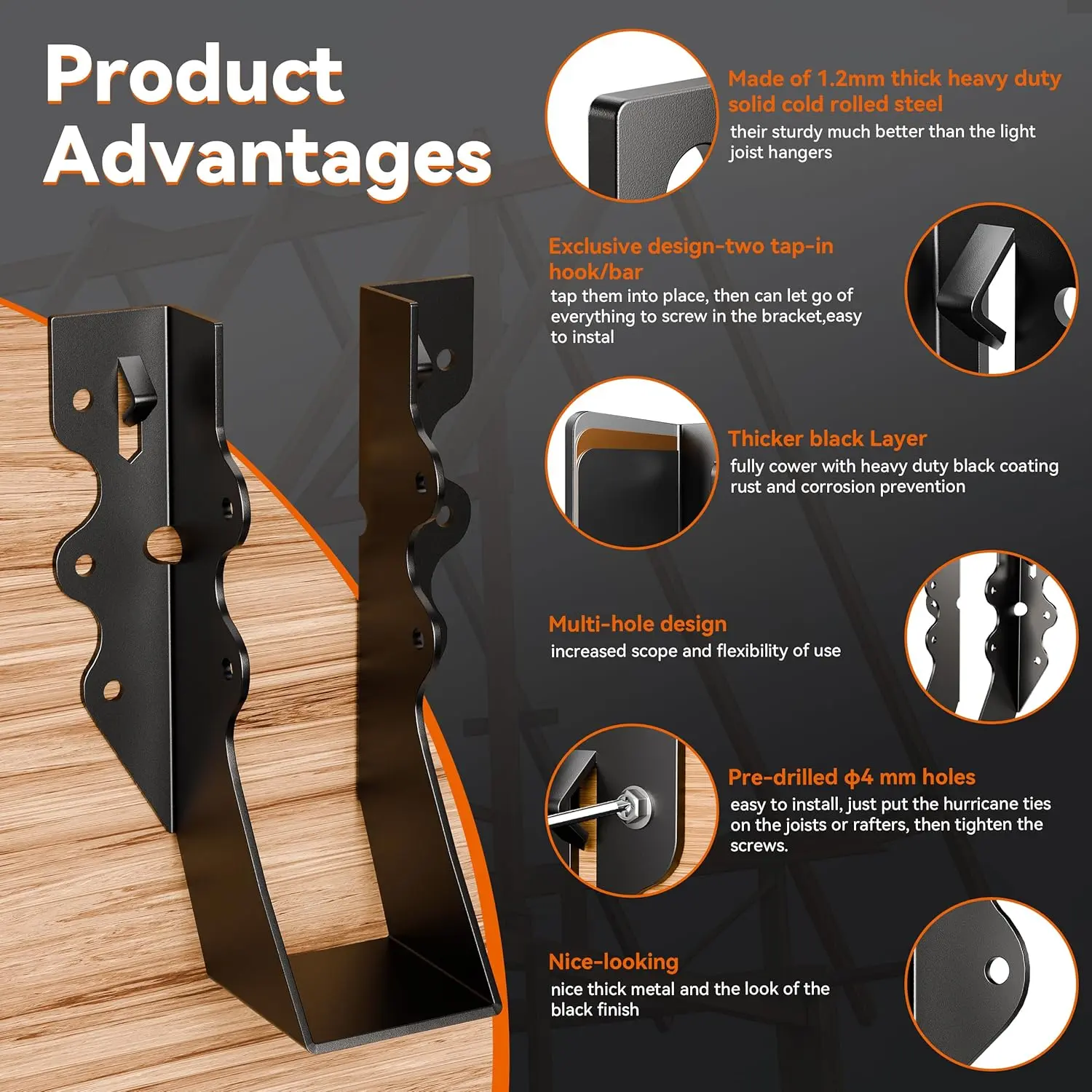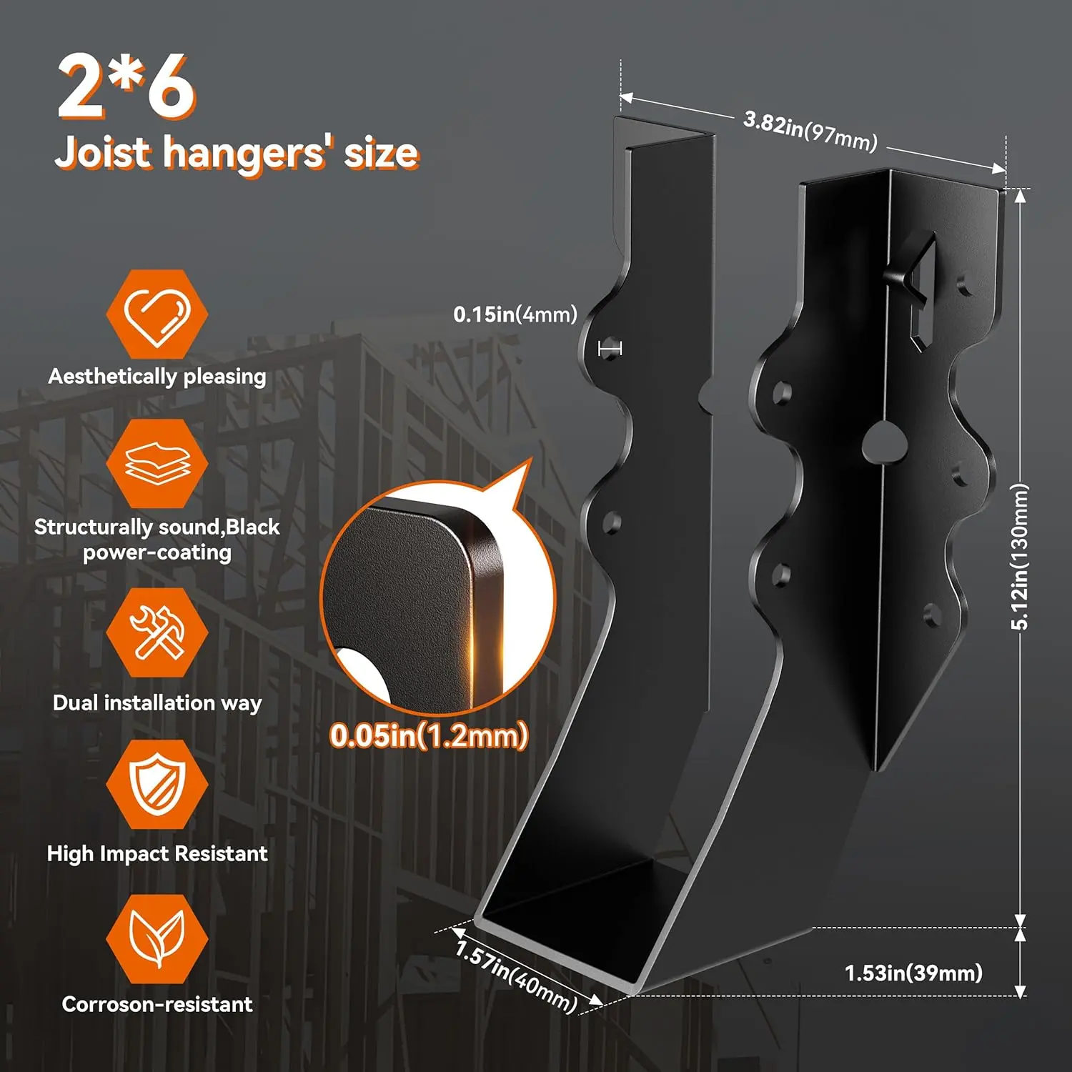 25 Pcs Black 2x6 Joist Hangers for Wood, Rafter Brackets, face Mount 2x6 Joist Hangers, Hurricane Ties Brackets for Shed/Barn/Coop/Porch/Truss, Structurally Sound and Aesthetically Pleasing