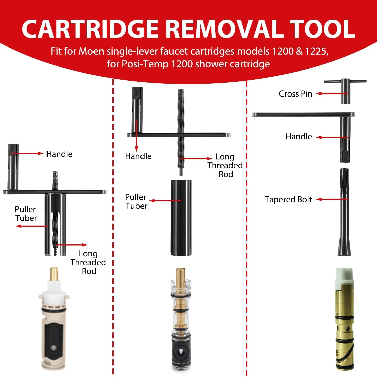 Professional Cartridge Extractor Tool, Cartridge Removal Tool, Cartridge Puller Fit For Moen 1200 1222 & 1225 Posi Temp Series Cartridge 999150-6