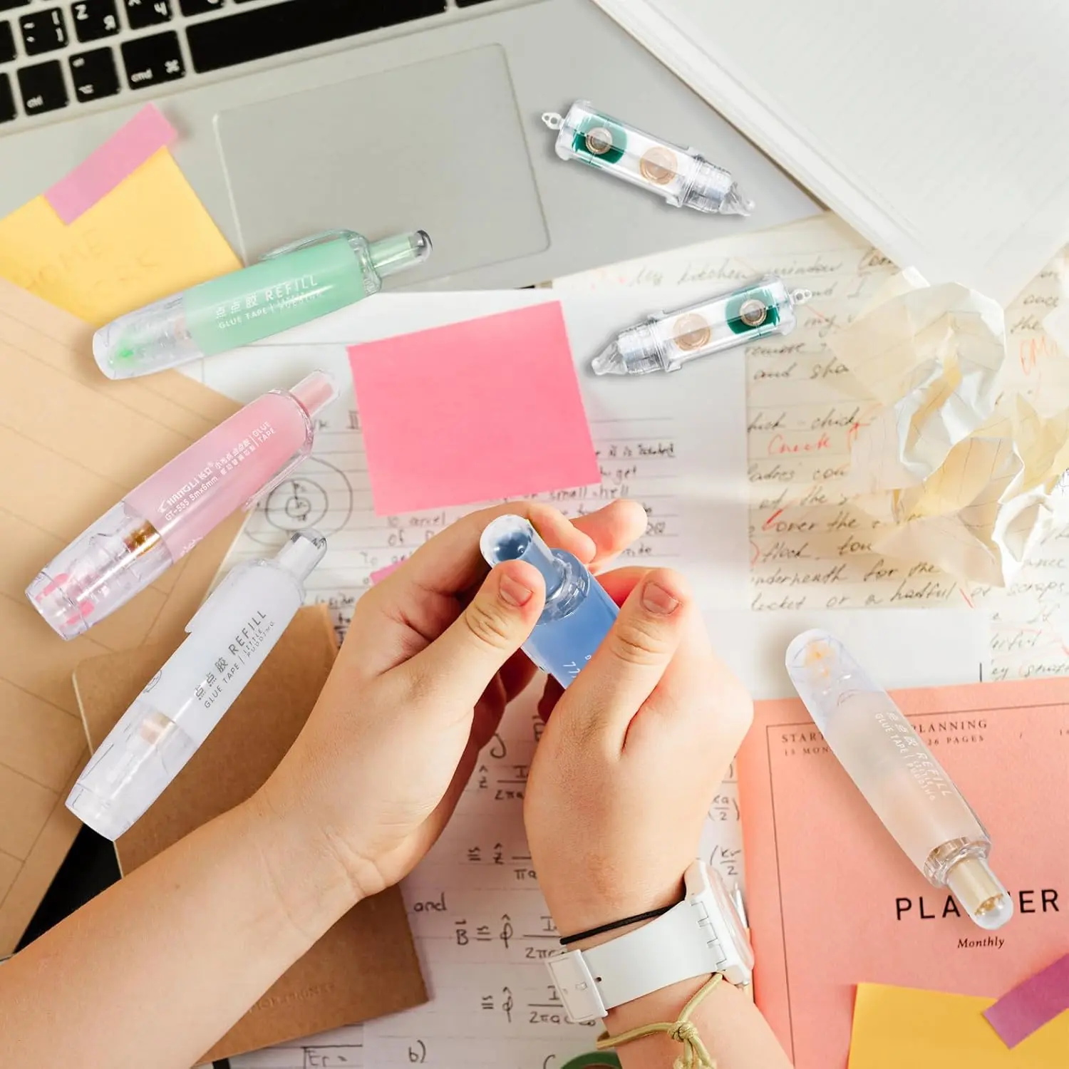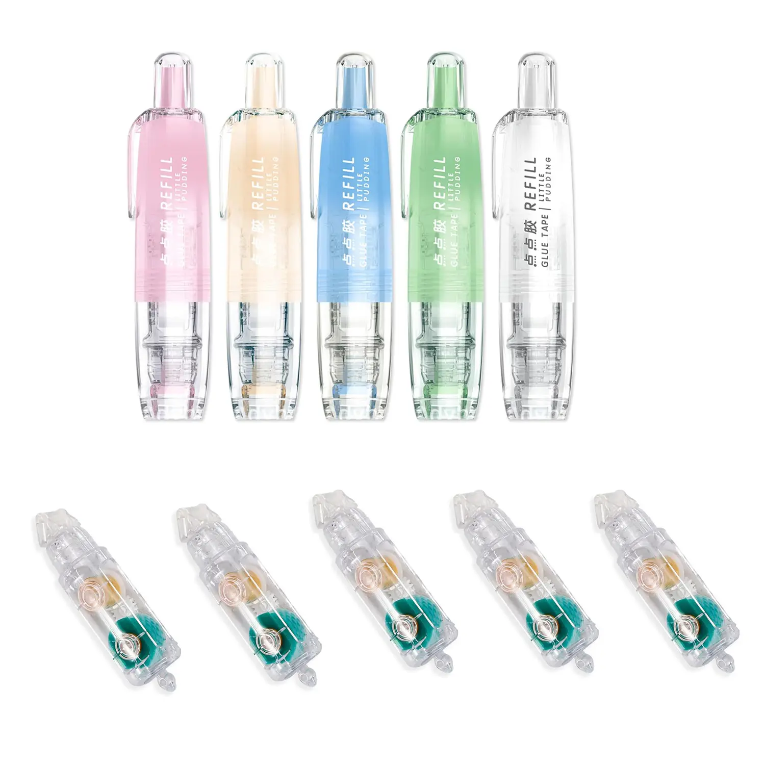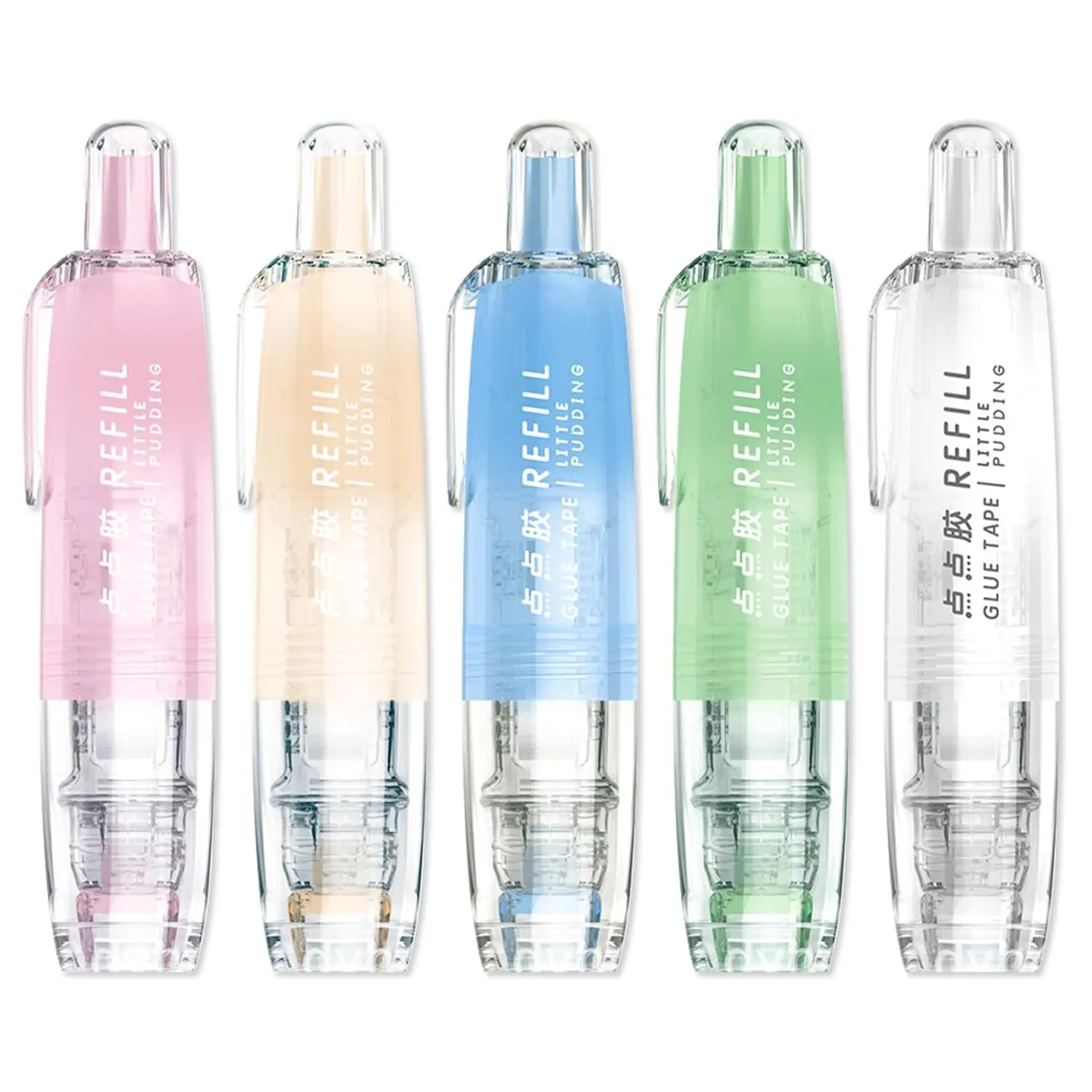 5 Pack Retractable Double Sided Tape Runner, Refillable Adhesive Tape Roller 0.23 Inch x 16.40 Ft, Glue Tape Roller with 360° Rotatable Tip for Scrapbook Supplies DIY Accessories (5 Colors)