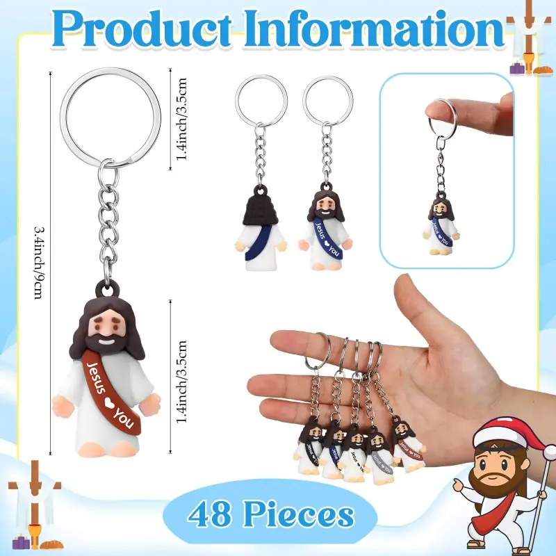 These Jesus figure keychains bring to you durable products that can withstand daily wear and tear; This supportive, reliable material ensures them won't tear or wear out easily, can serve you for a long time.