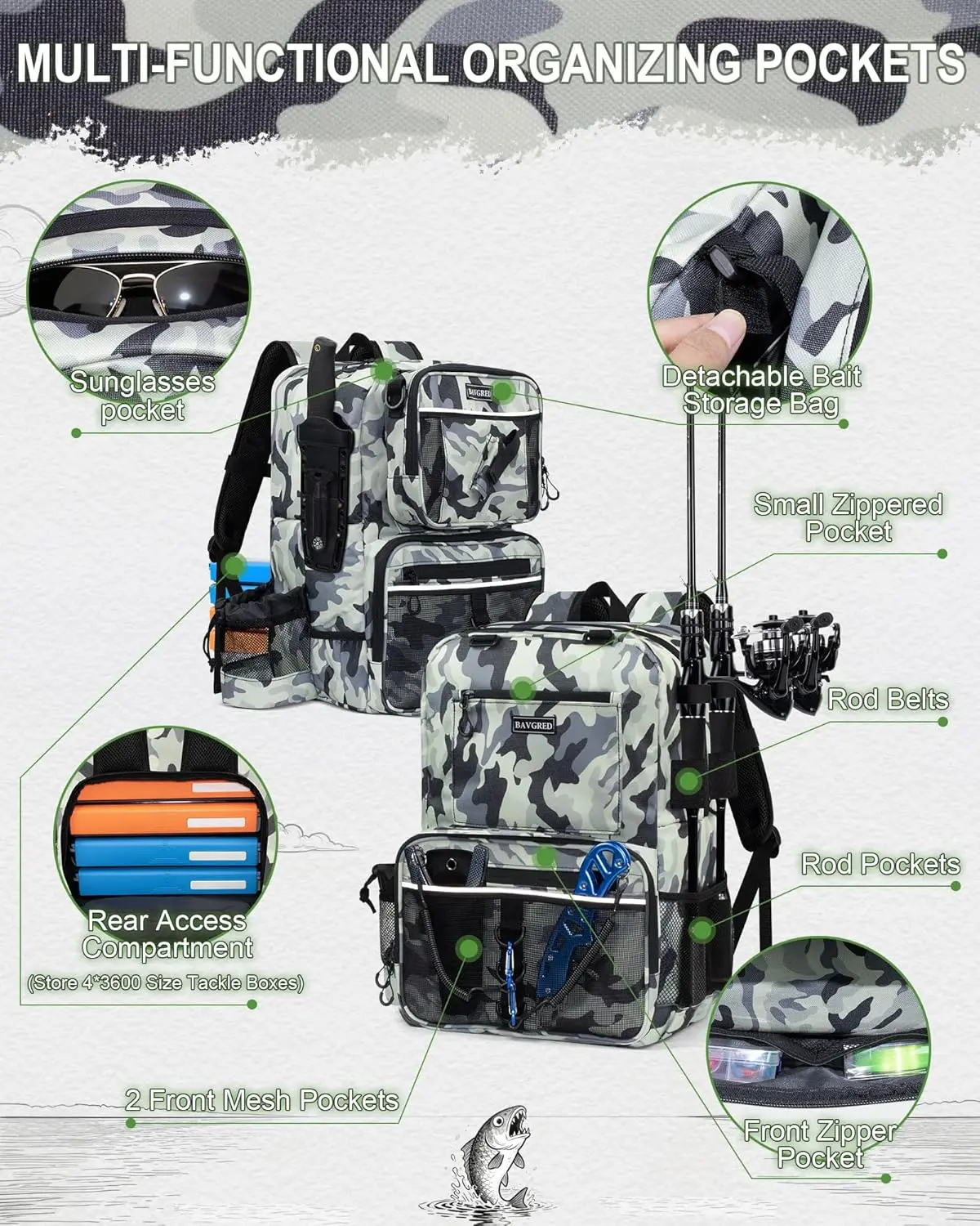 ·PERFECT FOR ANY OUTDOOR ACTIVITY: Designed specifically for anglers, this fishing gear bag provides complete storage for all your equipment. Beyond fishing, it's also perfect for camping, hiking, adventure trips, cycling, and other outdoor activities - making it the ideal choice for outdoor enthusiasts