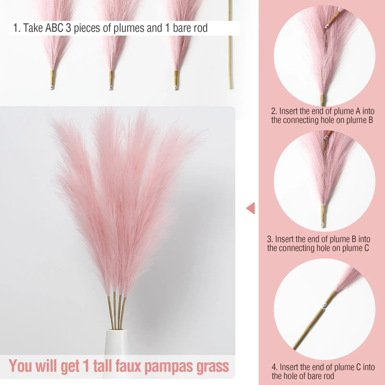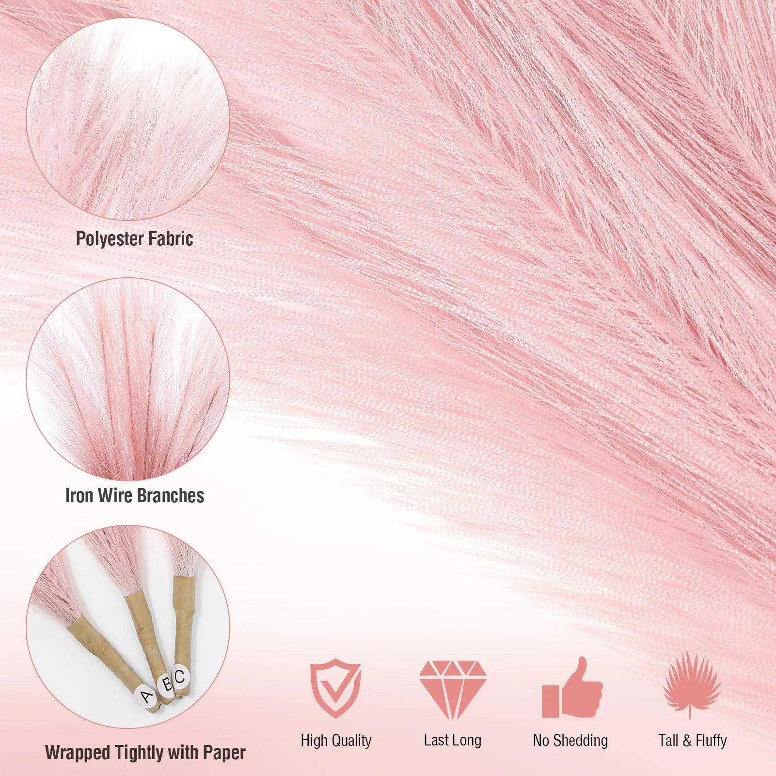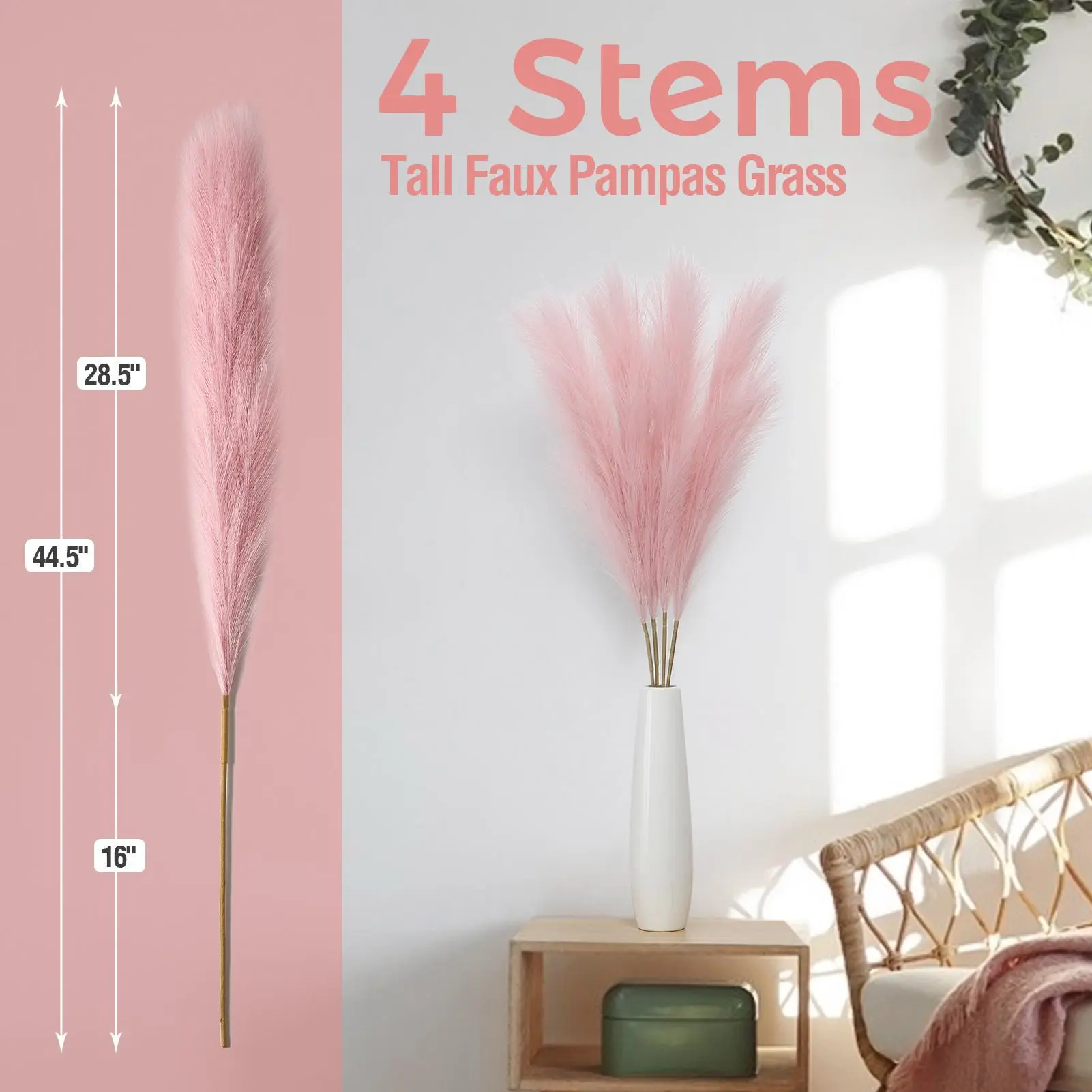 4 Pcs Dried Pampas Grass Decor 44 Inch Tall Pompas Floral Dry Flowers for Decoration Artificial Pampas Grass Home Decor for Boho Wedding-Pink Decorative Fruit Plants Bouquet-C