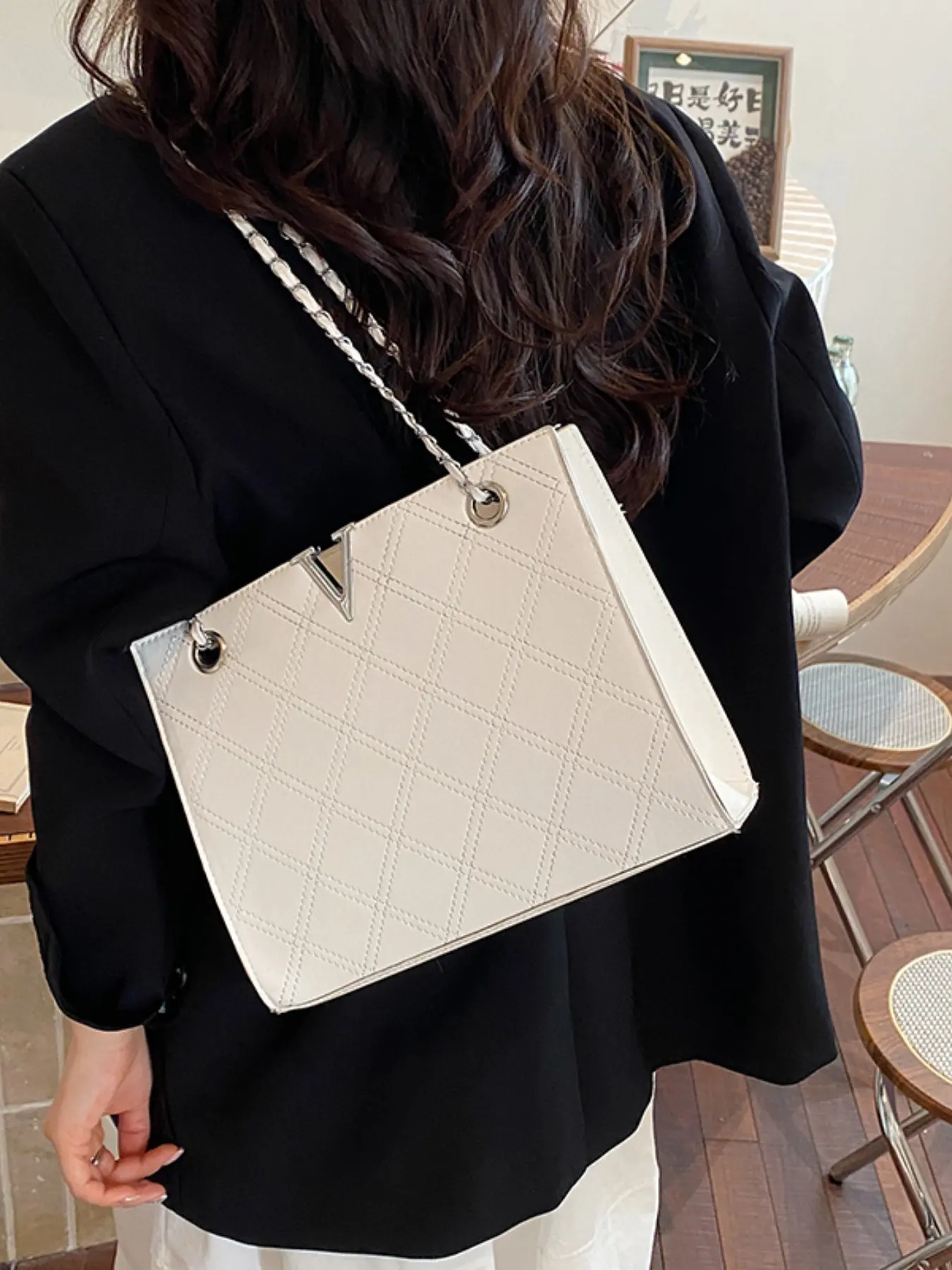2026 New V-Quilted Tote Bag, Silver Color V-Lock Chain, Large Capacity Luxury Shoulder Crossbody, Stylish Handbag for Women