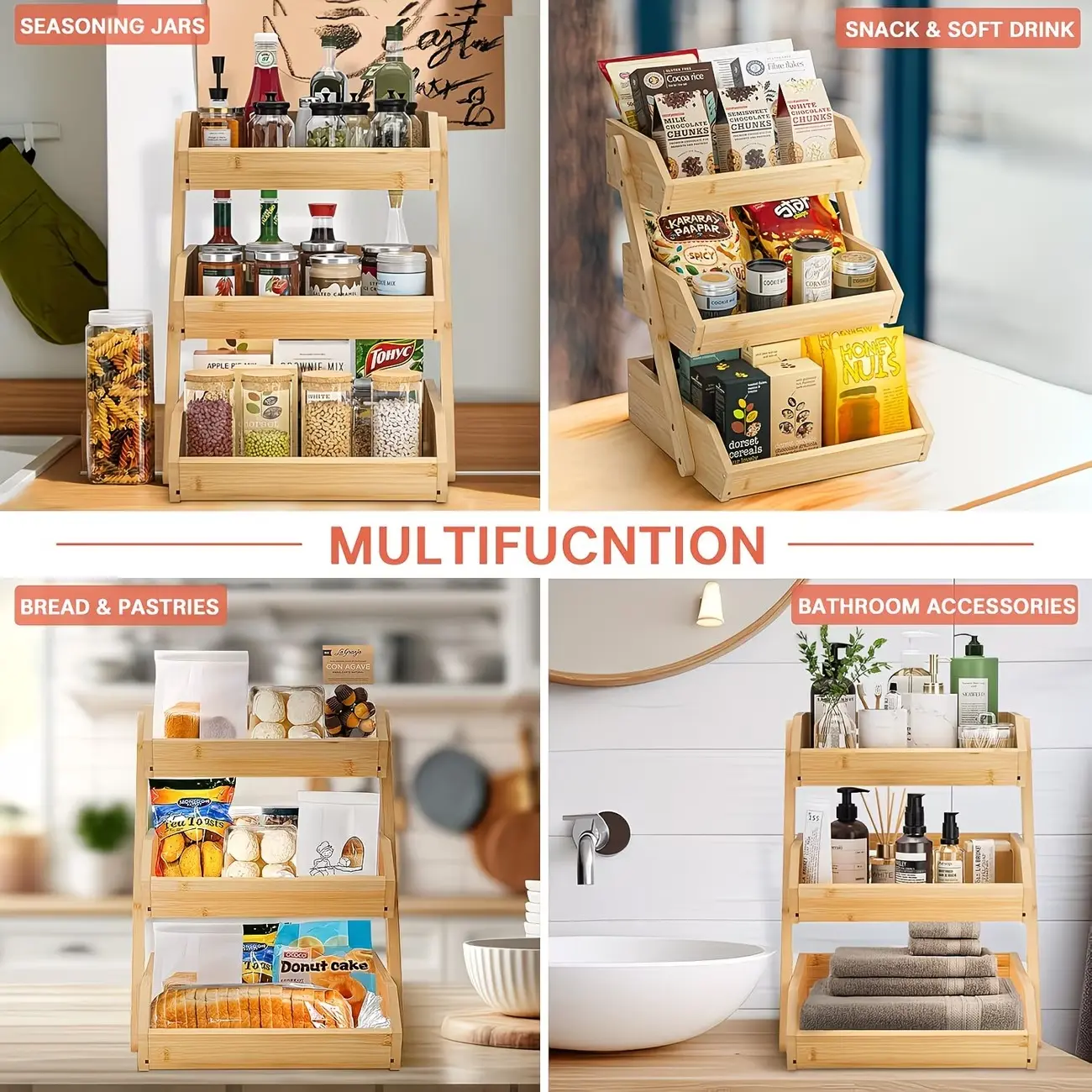 More than just a fruit holder, this versatile organizer can also be used to store snacks, bread, pastries, pantry items, toiletries, and other household essentials—perfect for kitchen, bathroom, or countertop use.