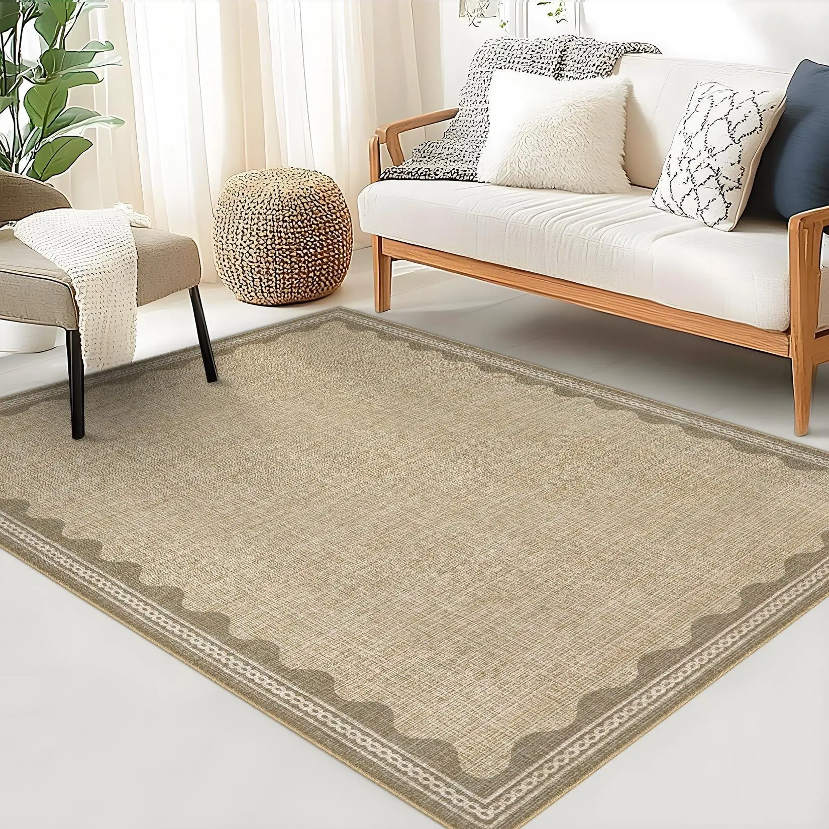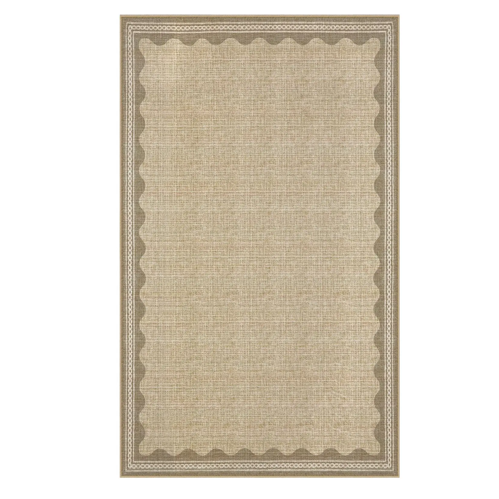 5 x 7 ft Polyester Natural Rectangular Indoor Bedroom Living Room Scalloped Modern Machine Washable Area Rug-B