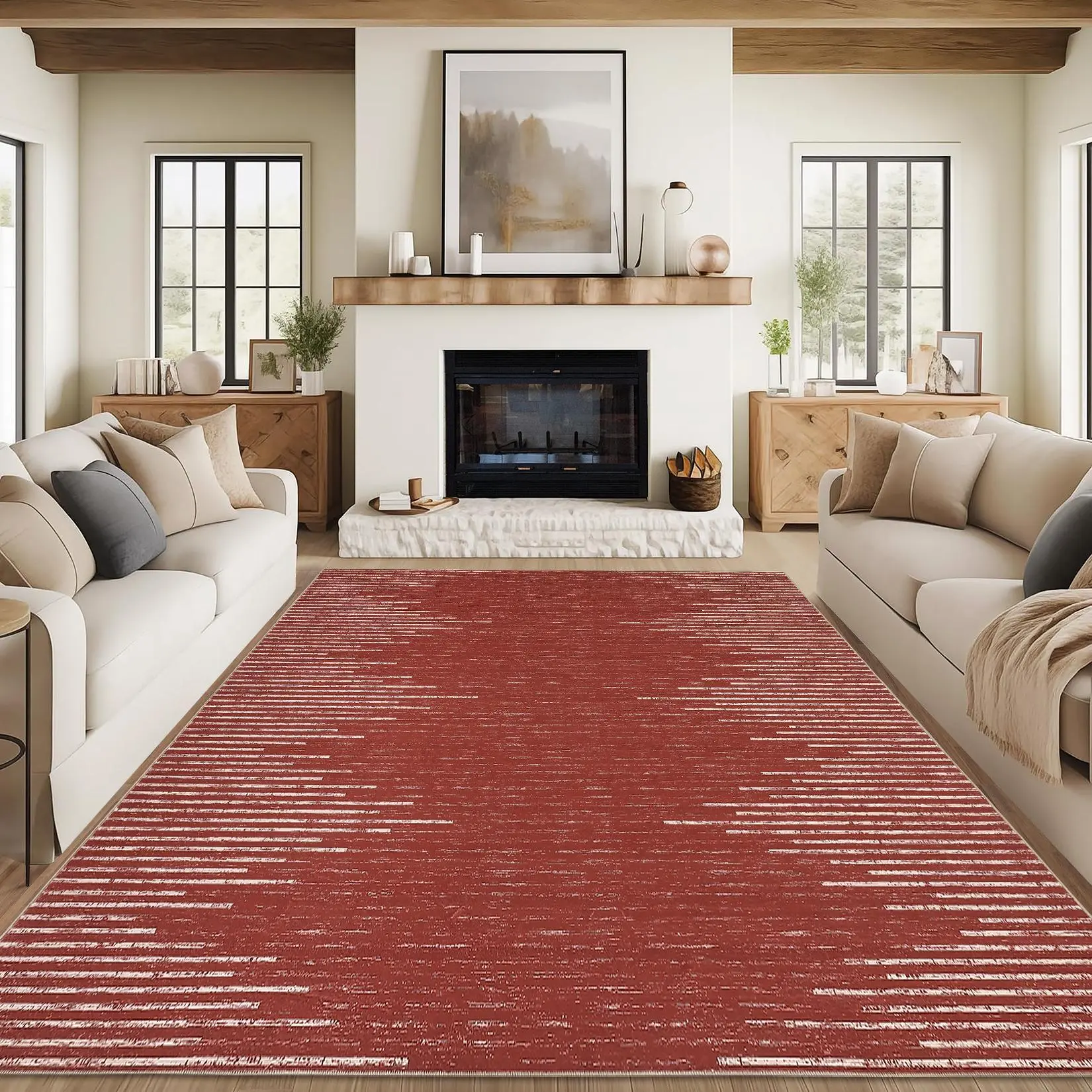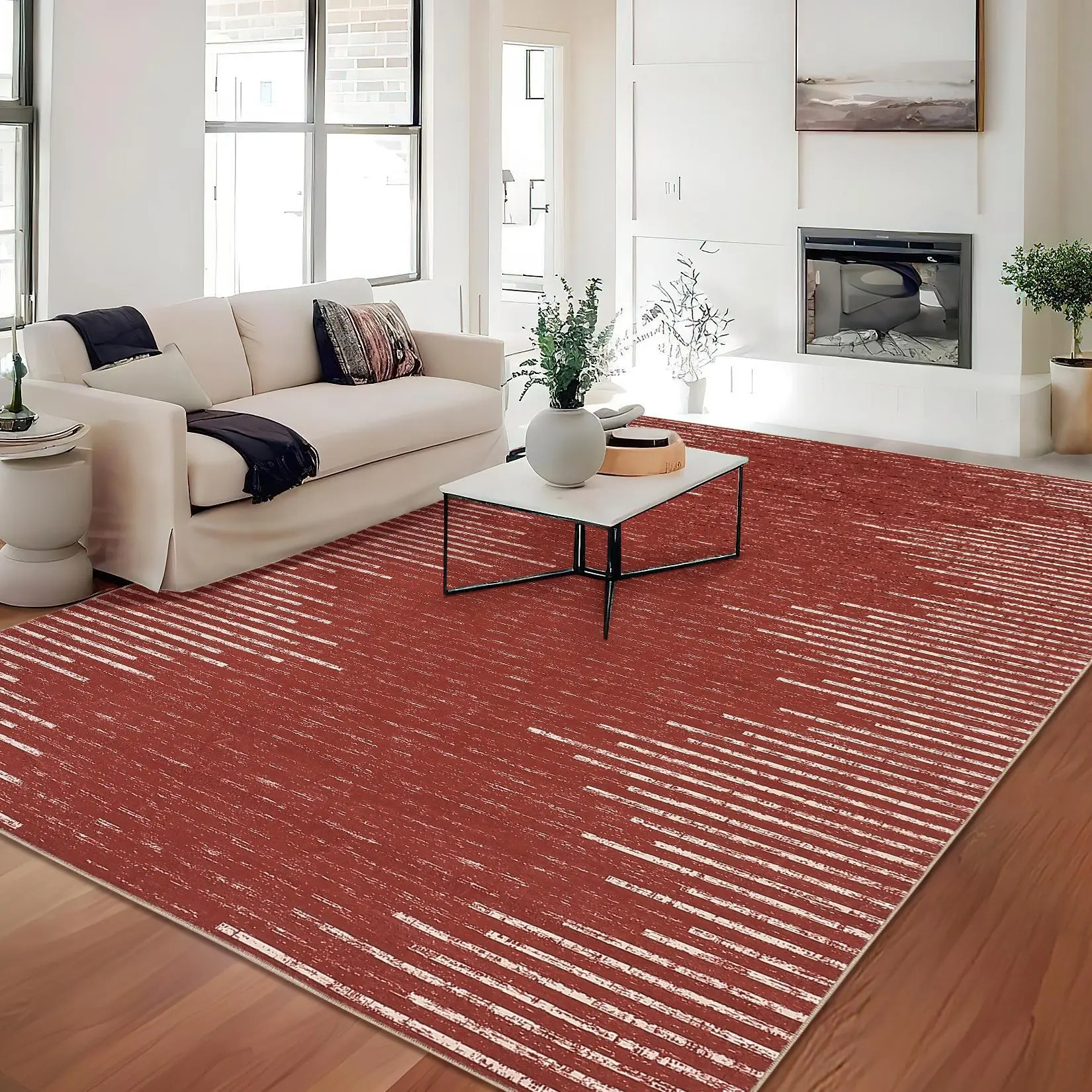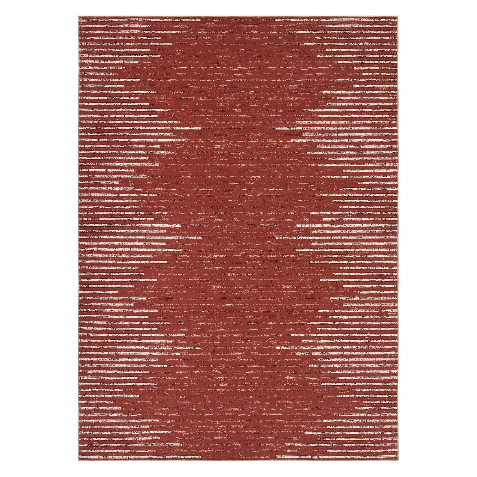 Red Modern 8 x 10(ft) Rectangular Washable Indoor Soft Non Slip Geometric Area Rug with Stripped Lines-B