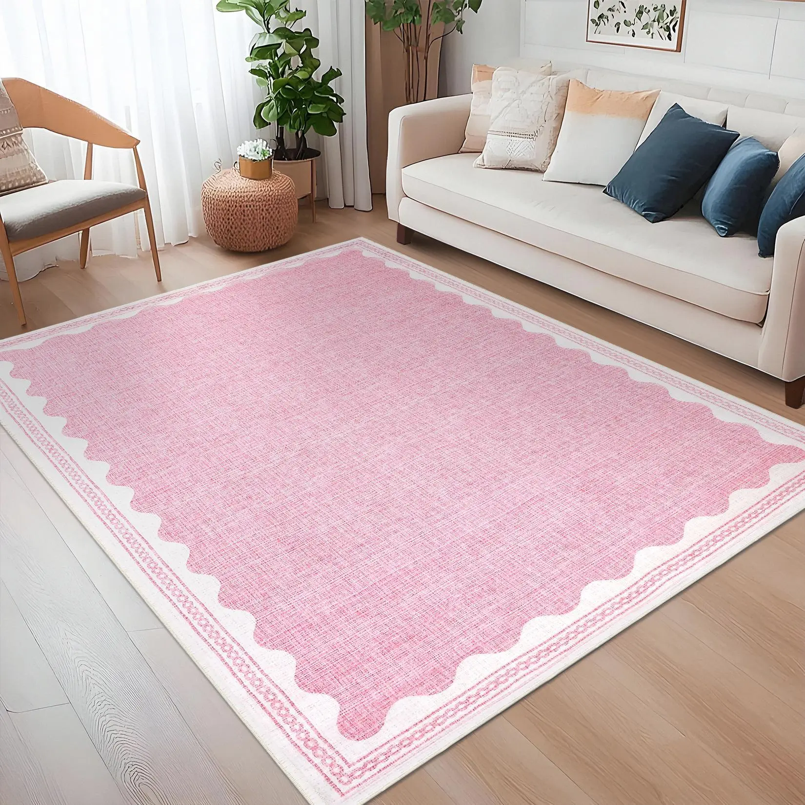 9 x 12 ft Polyester Pink Rectangular Indoor Bedroom Living Room Scalloped Modern Machine Washable Area Rug-B