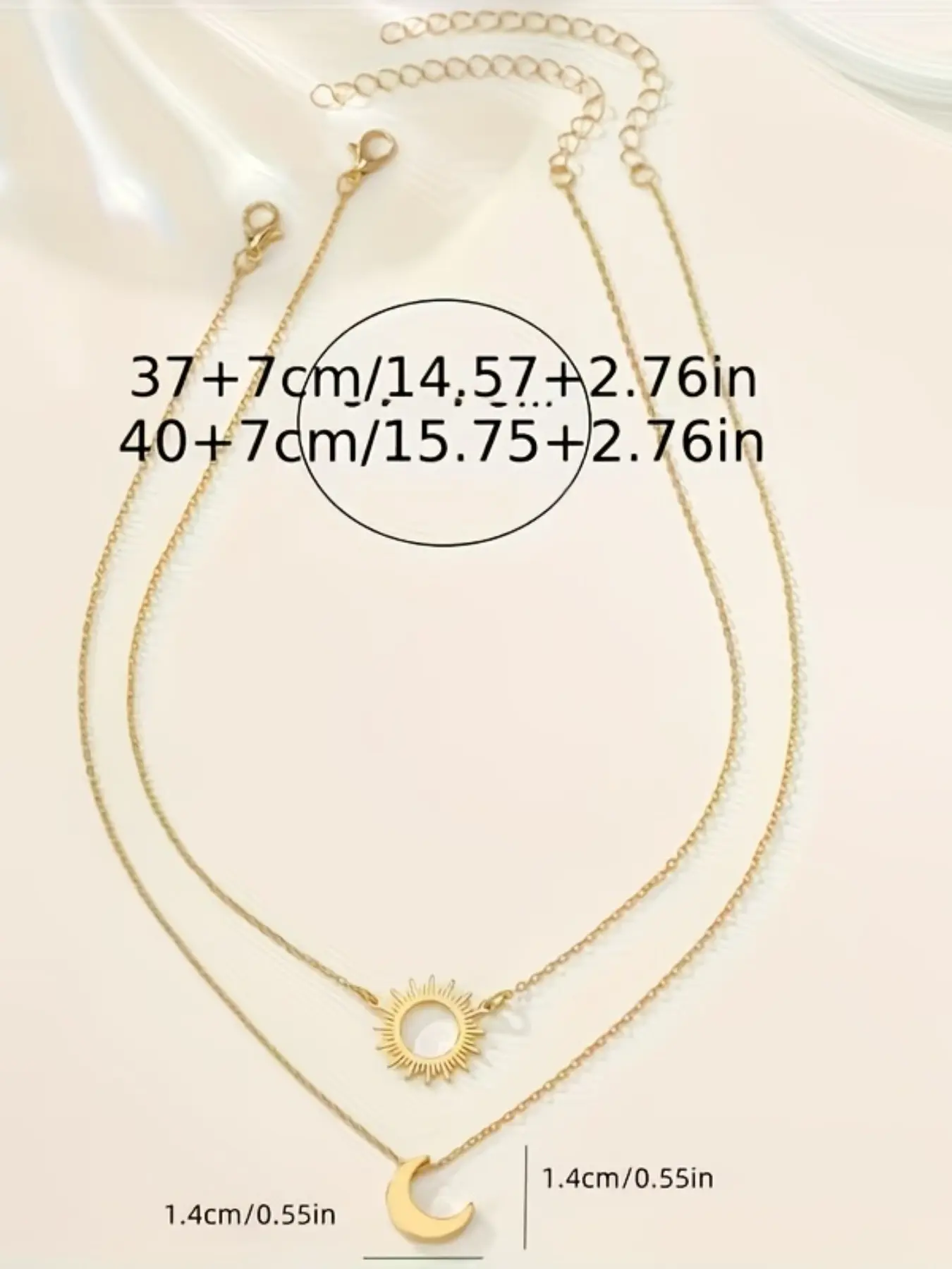 2 vintage Bohemian style sun and moon pendant necklaces, women's 18K gold plated stainless steel double-layer layered necklace, perfect for summer and beach vacation decoration