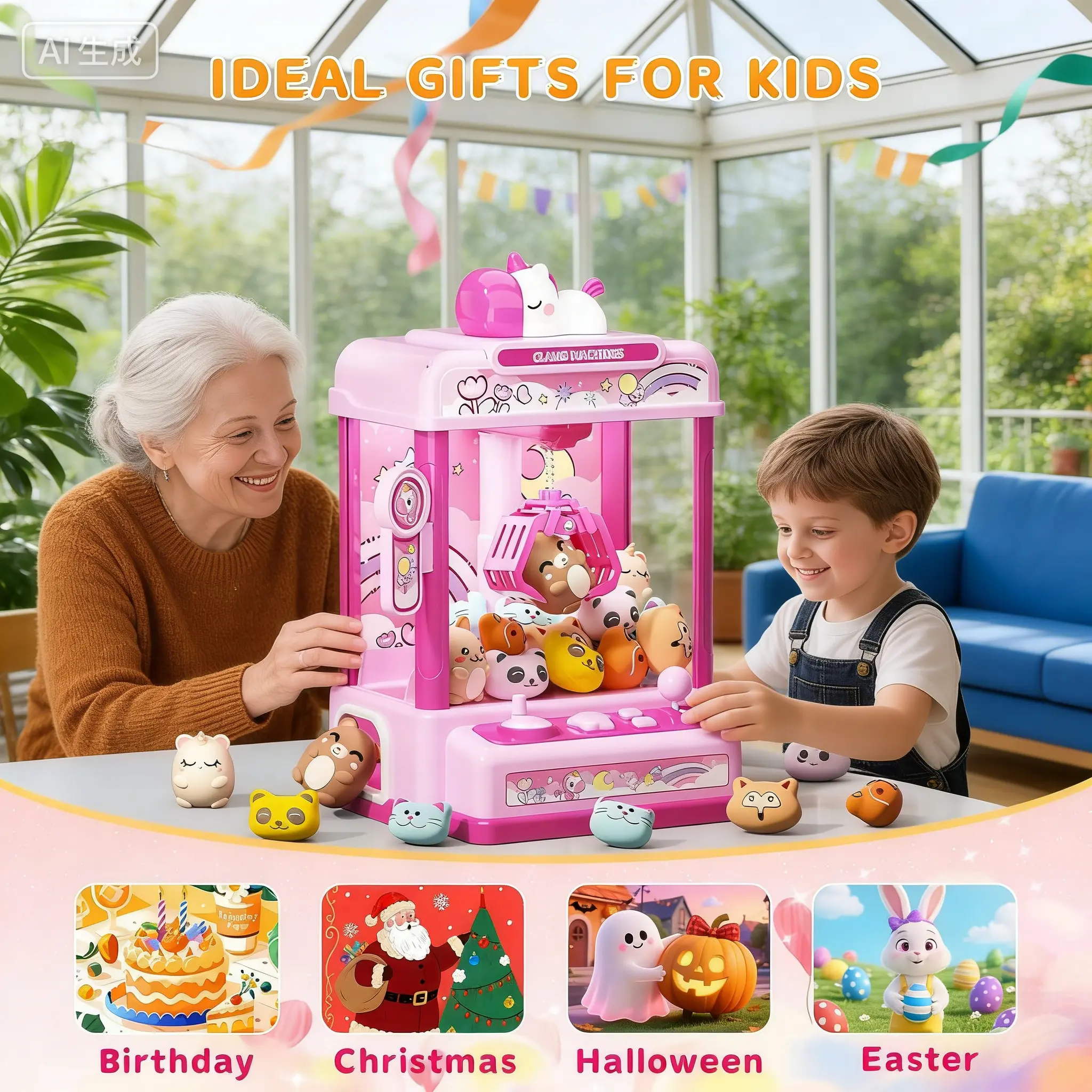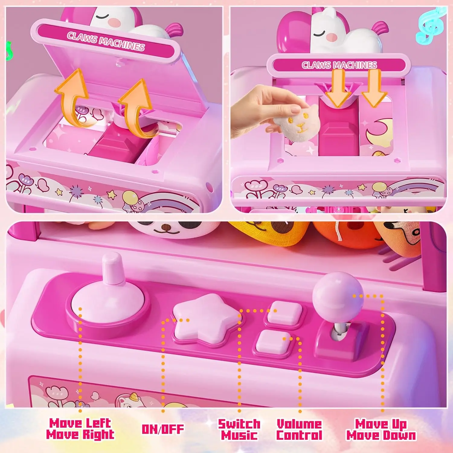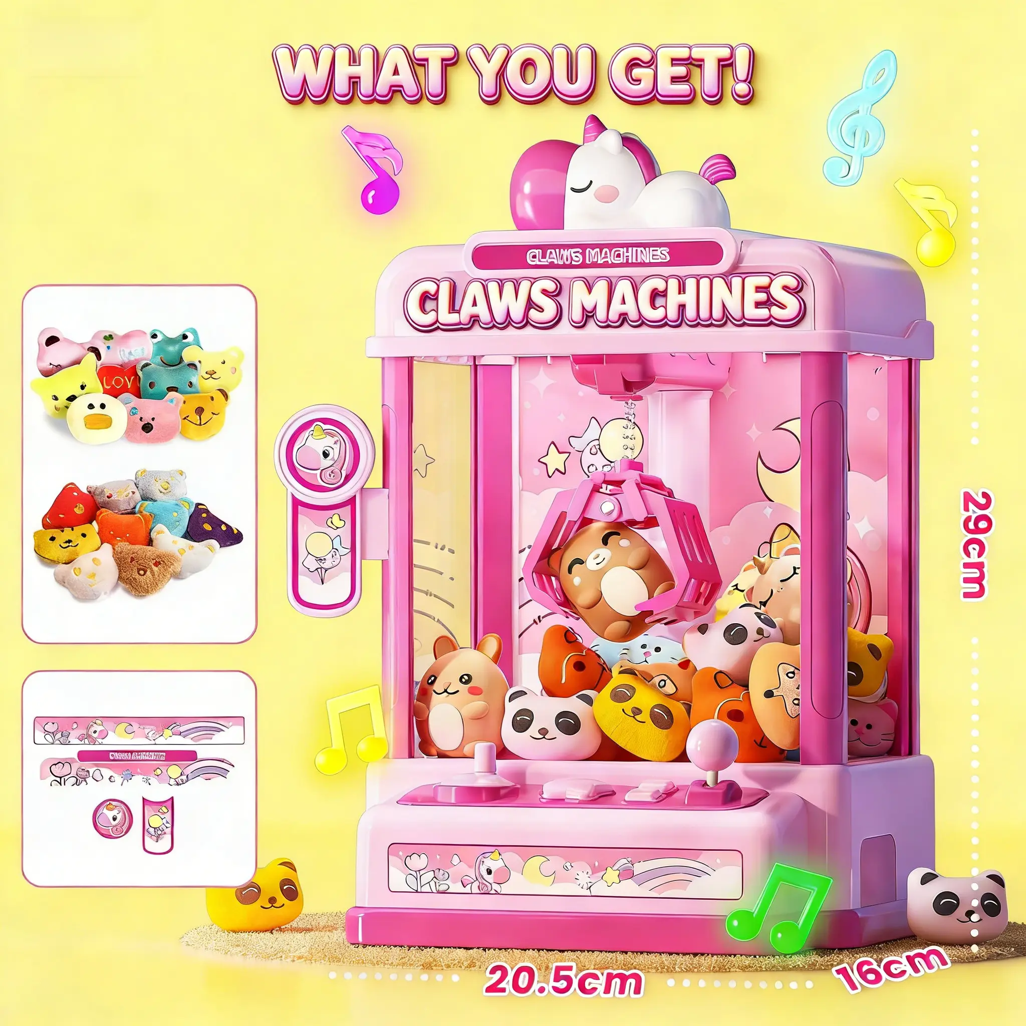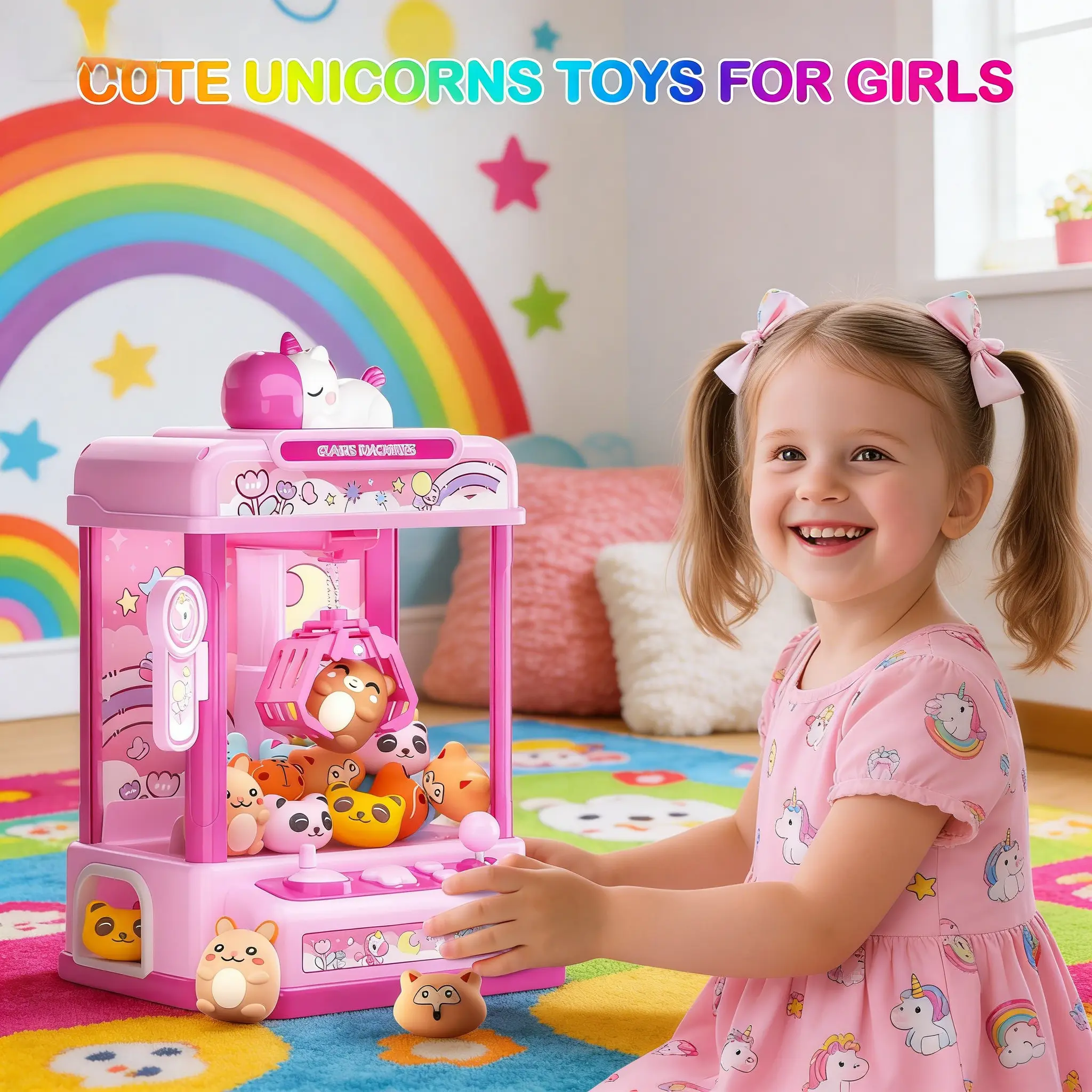 Claws Machines for Kids ,Candy Dispenser Machine,Claws Game Machine for Girls Age 5+, Mini Vending Machines Girls Unicorns Toys with Sound & 20 Mini Plush Toys,Arcades Game Indoor Toy for Home Party Birthday