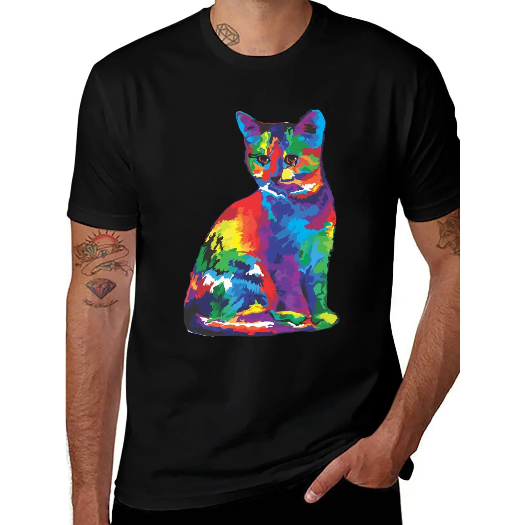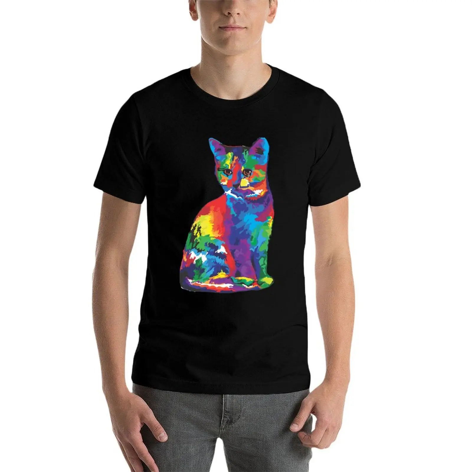 Step into the world of creative expression with our Artistic Vibrant Cat Graphic Tee. This unique piece features a sitting cat silhouette brought to life through a stunning explosion of abstract colors. Rendered in a modern pop-art style, this design isn't just a shirt—it's a wearable canvas that captures the mysterious and spirited soul of our feline friends.