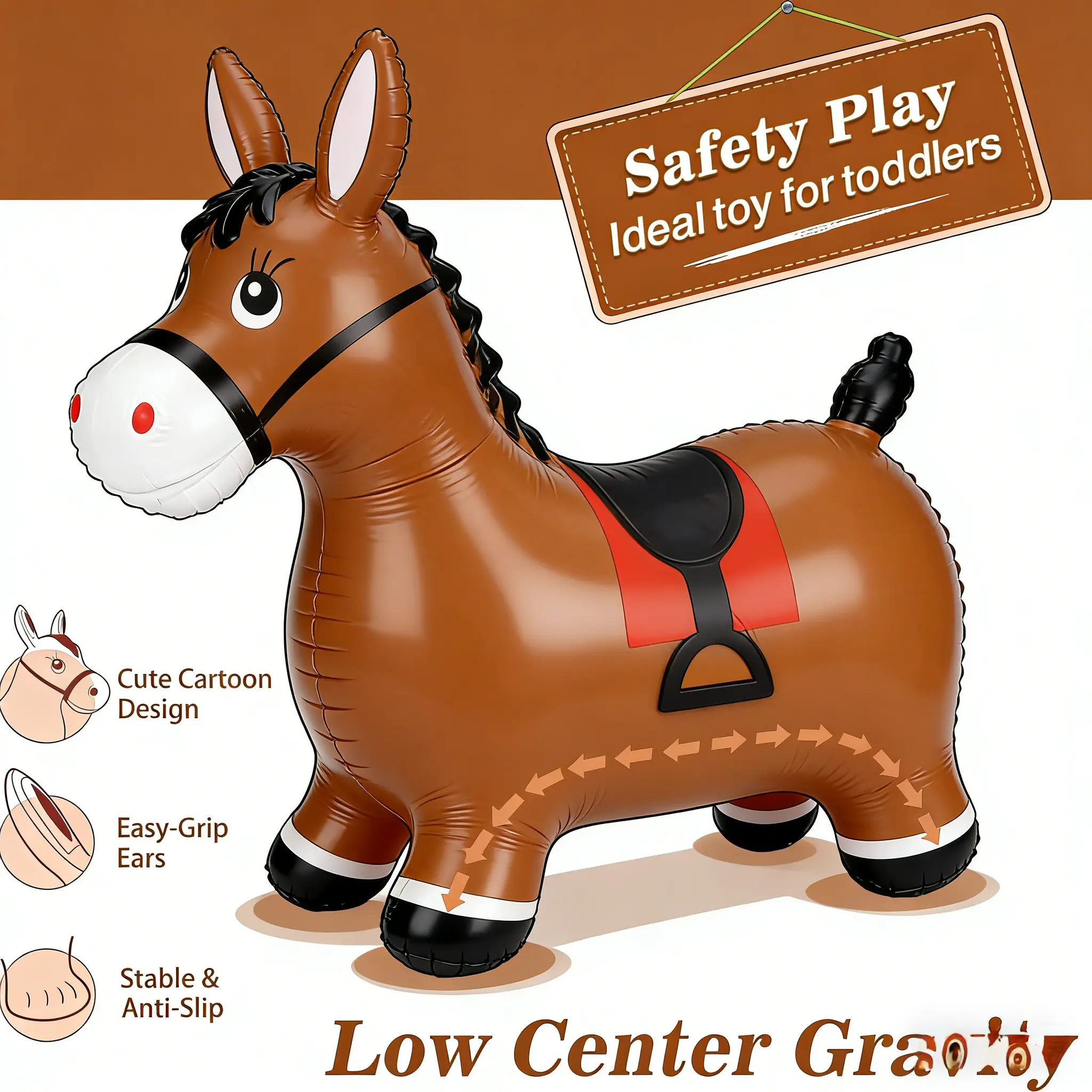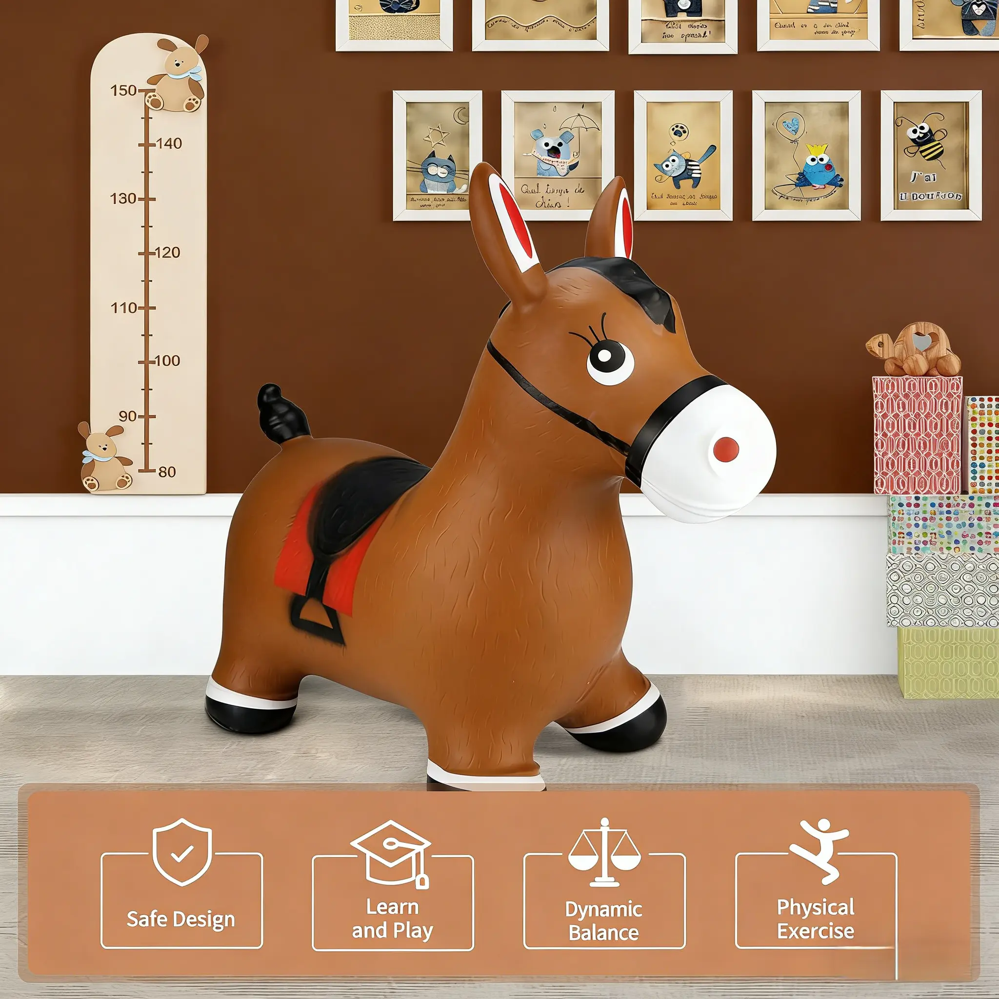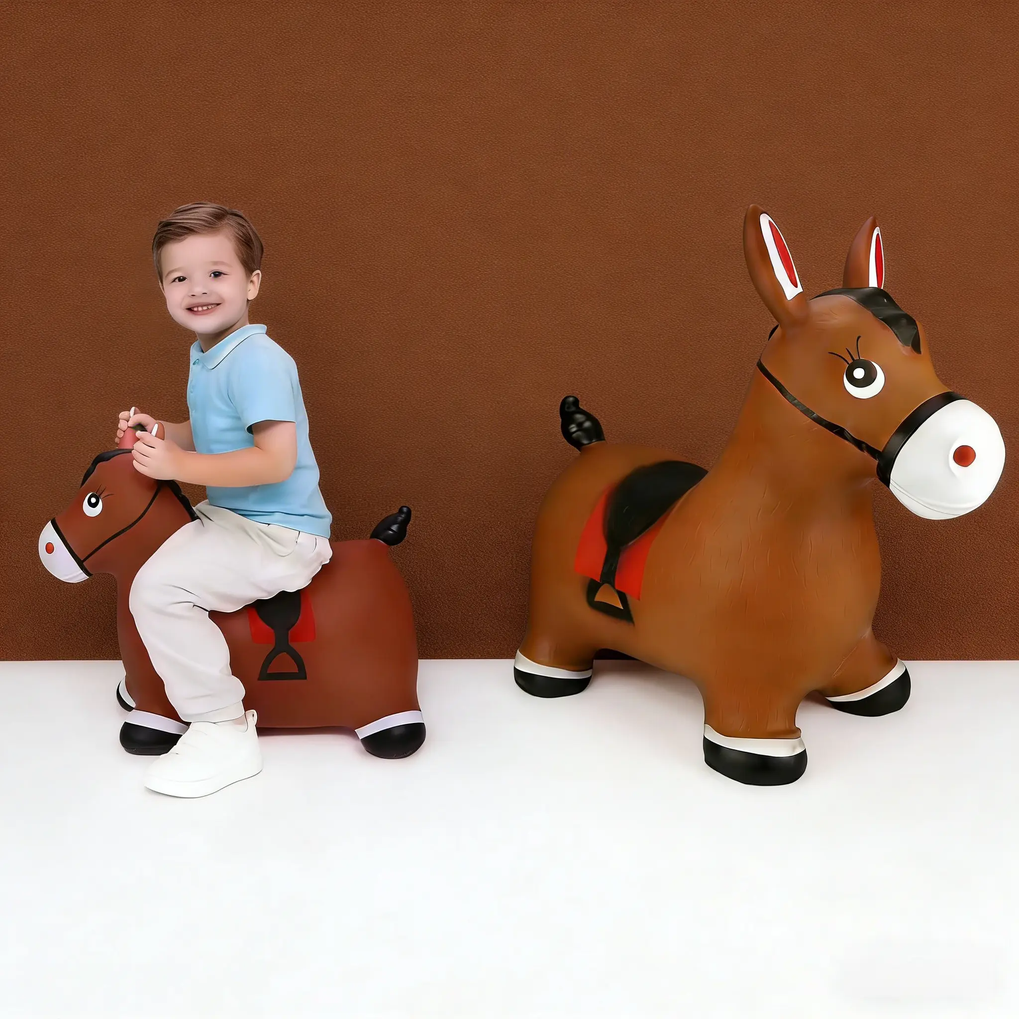 Bouncy Horse Hopper Toys, Toddlers Bouncing Farm Animals Inflatable Jumping Hopping Horse, Ride on Rubber Bouncer for Kids, Outdoor Indoor Cool Birthday Gifts for 2 3 4 5Year Old Girl Boy