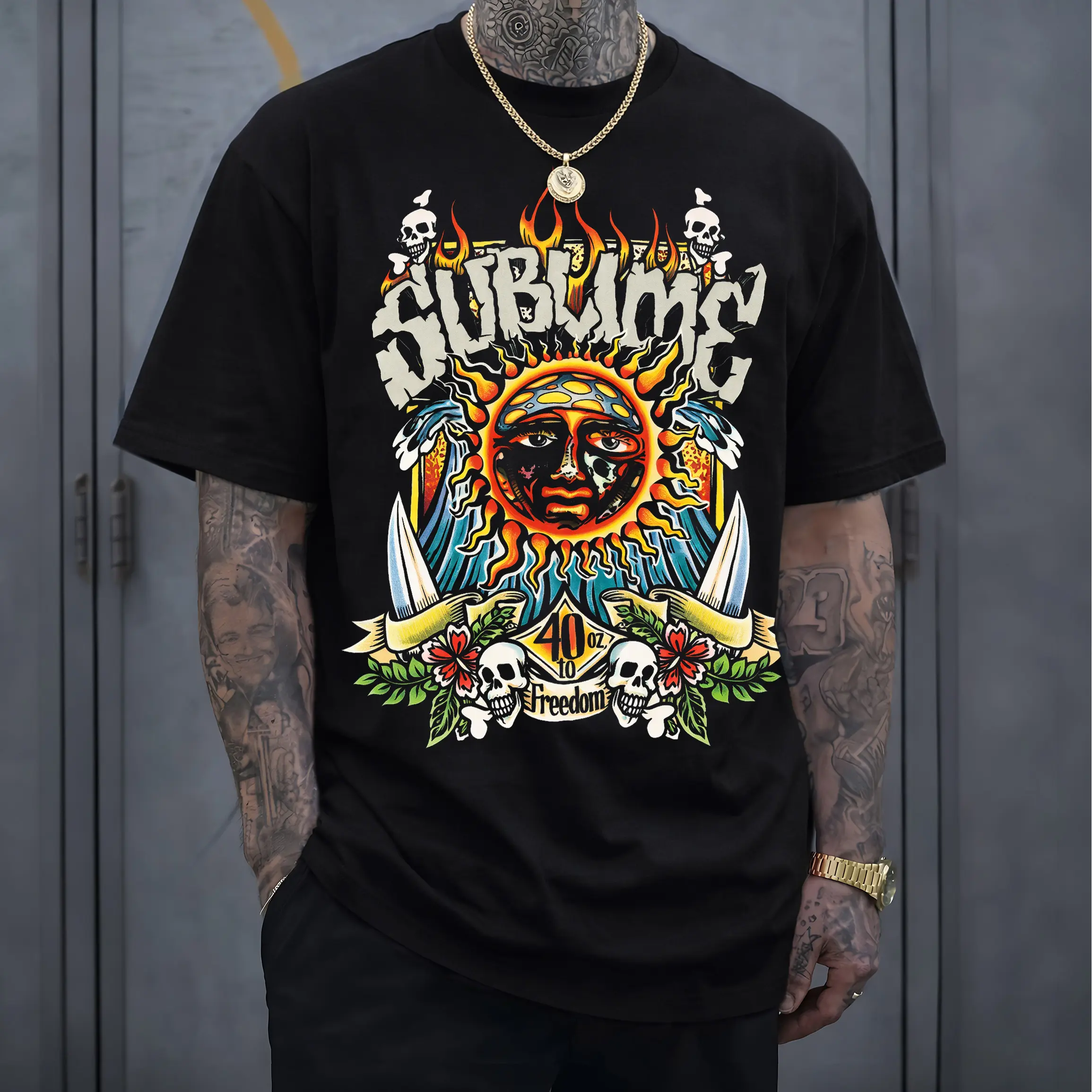 Sublime Graphic Crewneck Unisex T-shirt, Graphic Band Tee Rock Music, Vintage 40oz To Freedom Tshirt, Top Menswear Man Streetwear Casual Tropical Cotton Shortsleeve