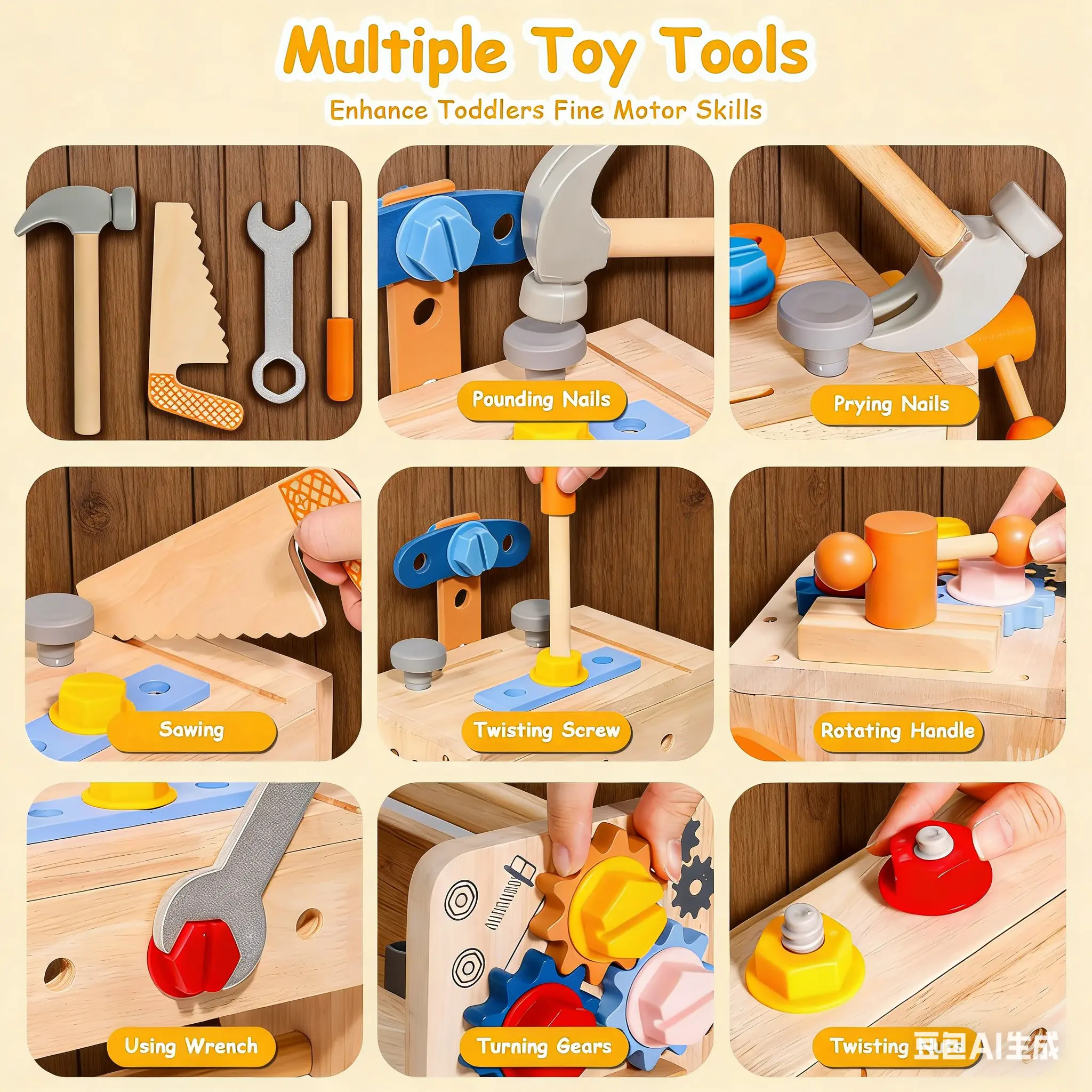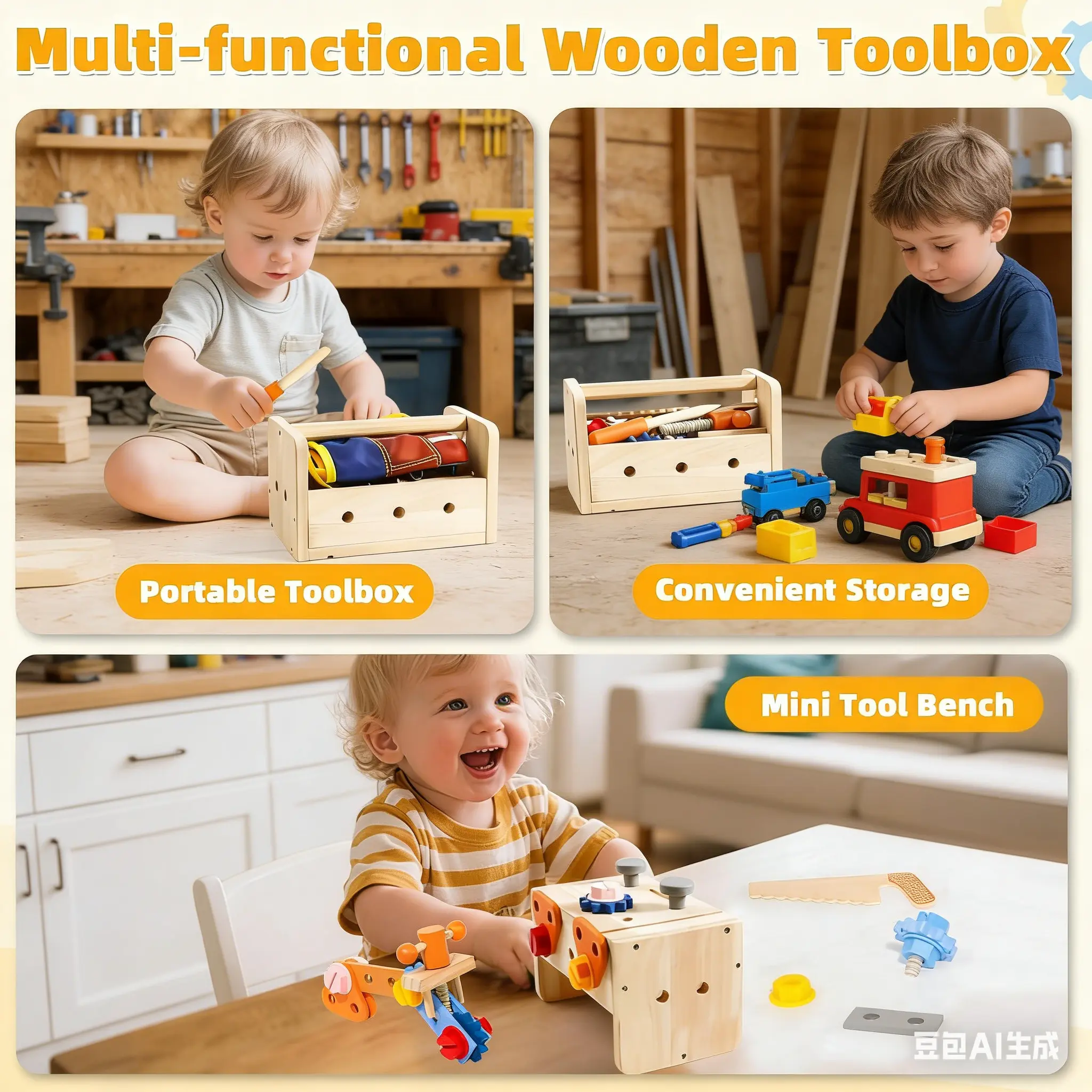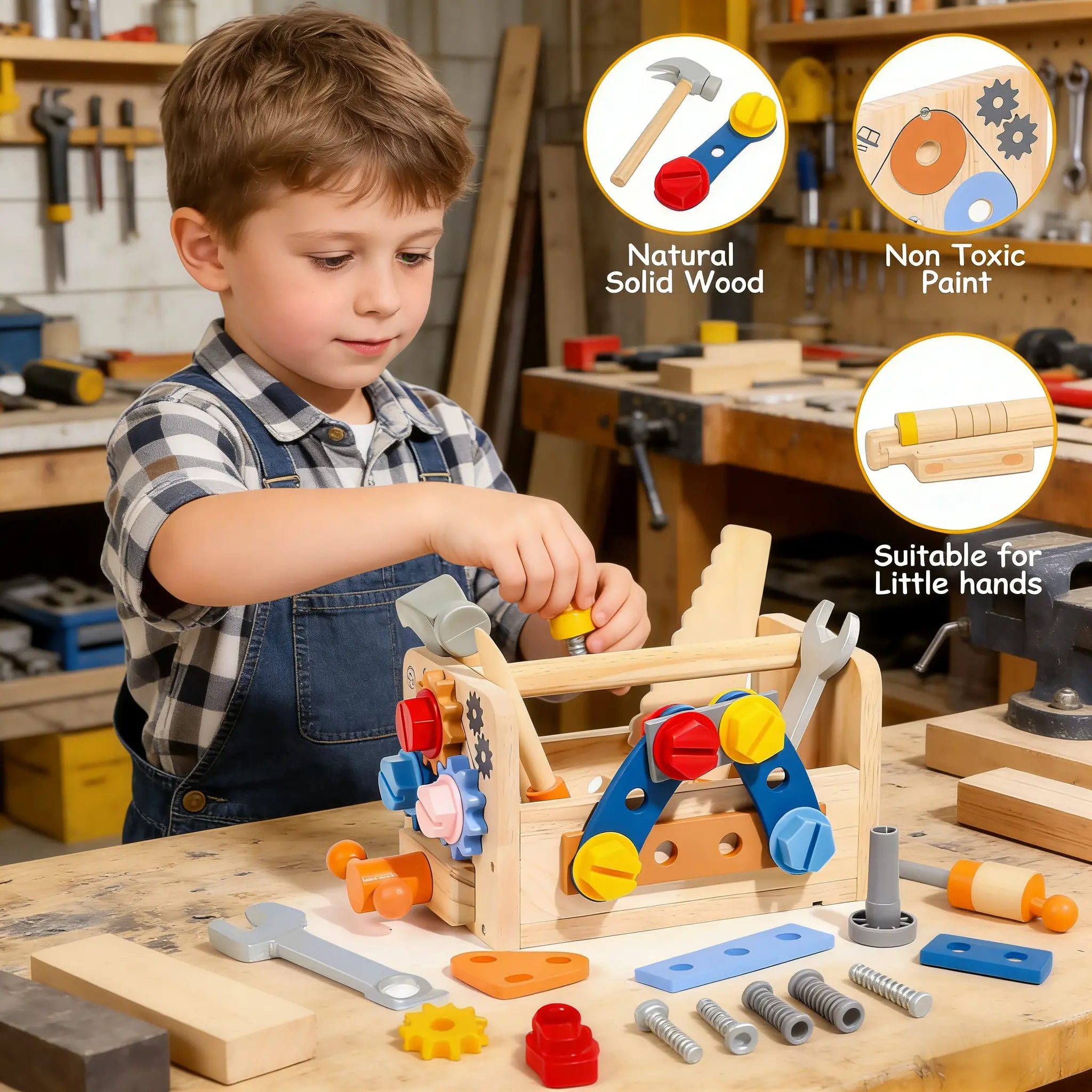 ·39 PCS Wooden Set: Includes various tools for imaginative play.