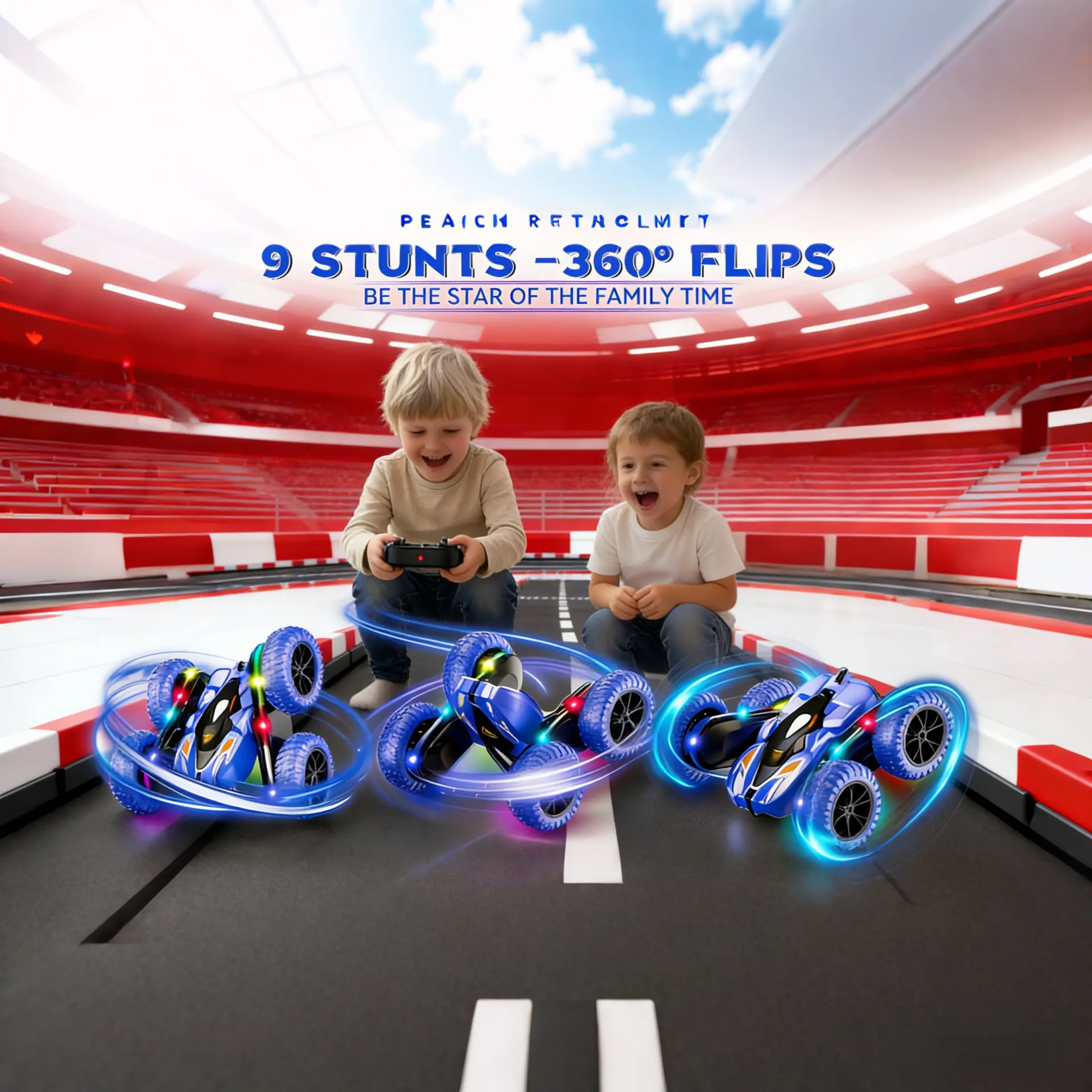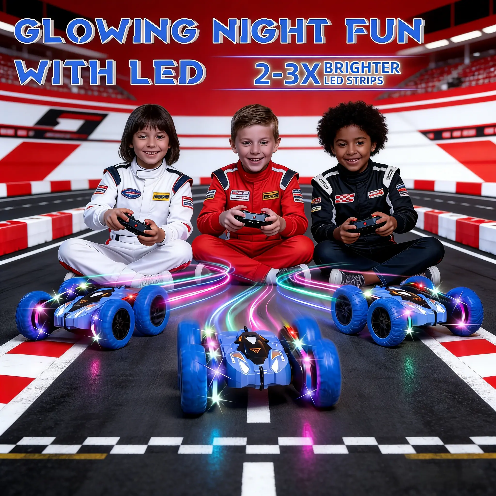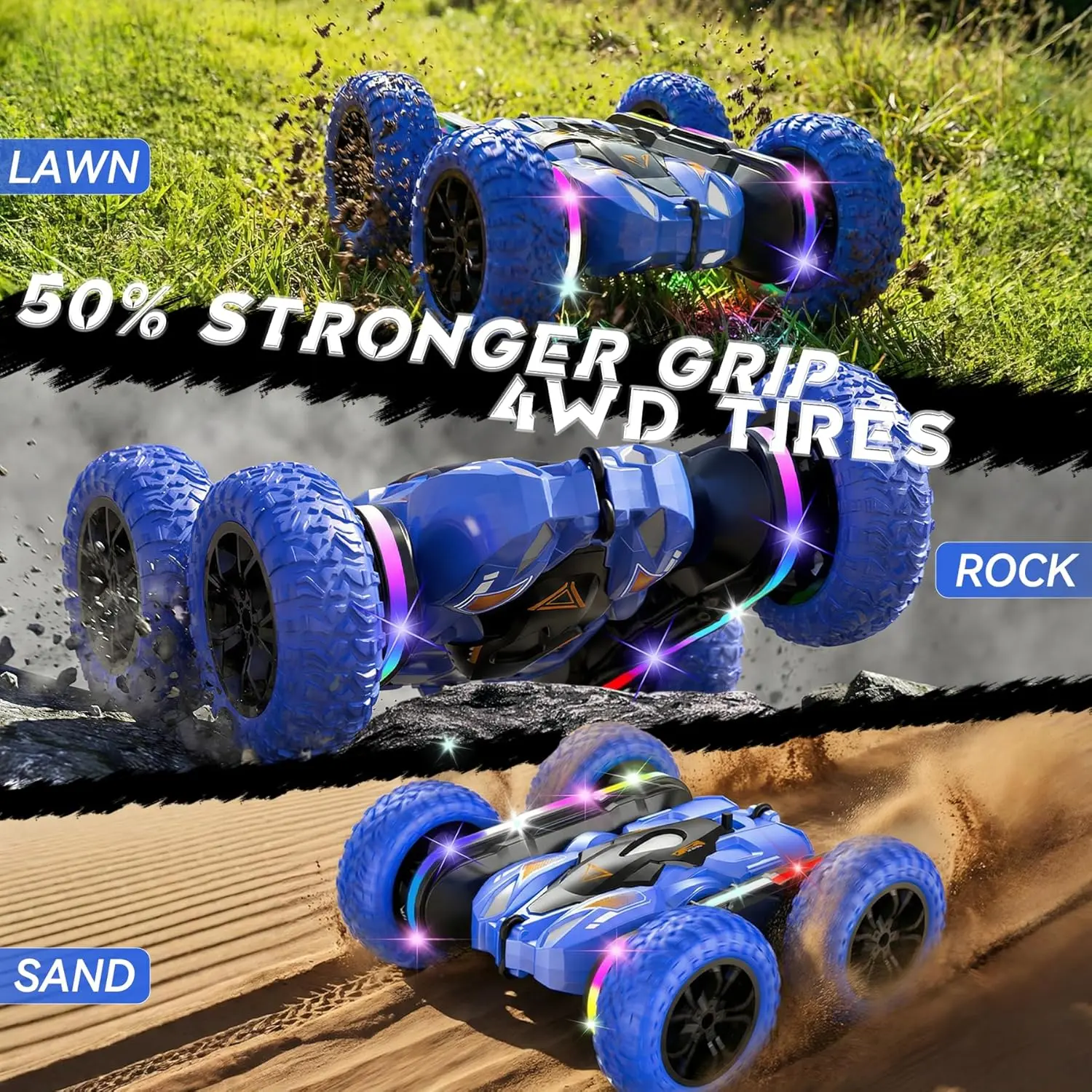 Remote Control Car for Kids, Rechargeable LED Light Off-Road Toy Car, 2.4GHz 4WD Stunt RC car with Double-sided 360-degree flip remote control racing car, Gifts for Boys Girls Ages 5-12