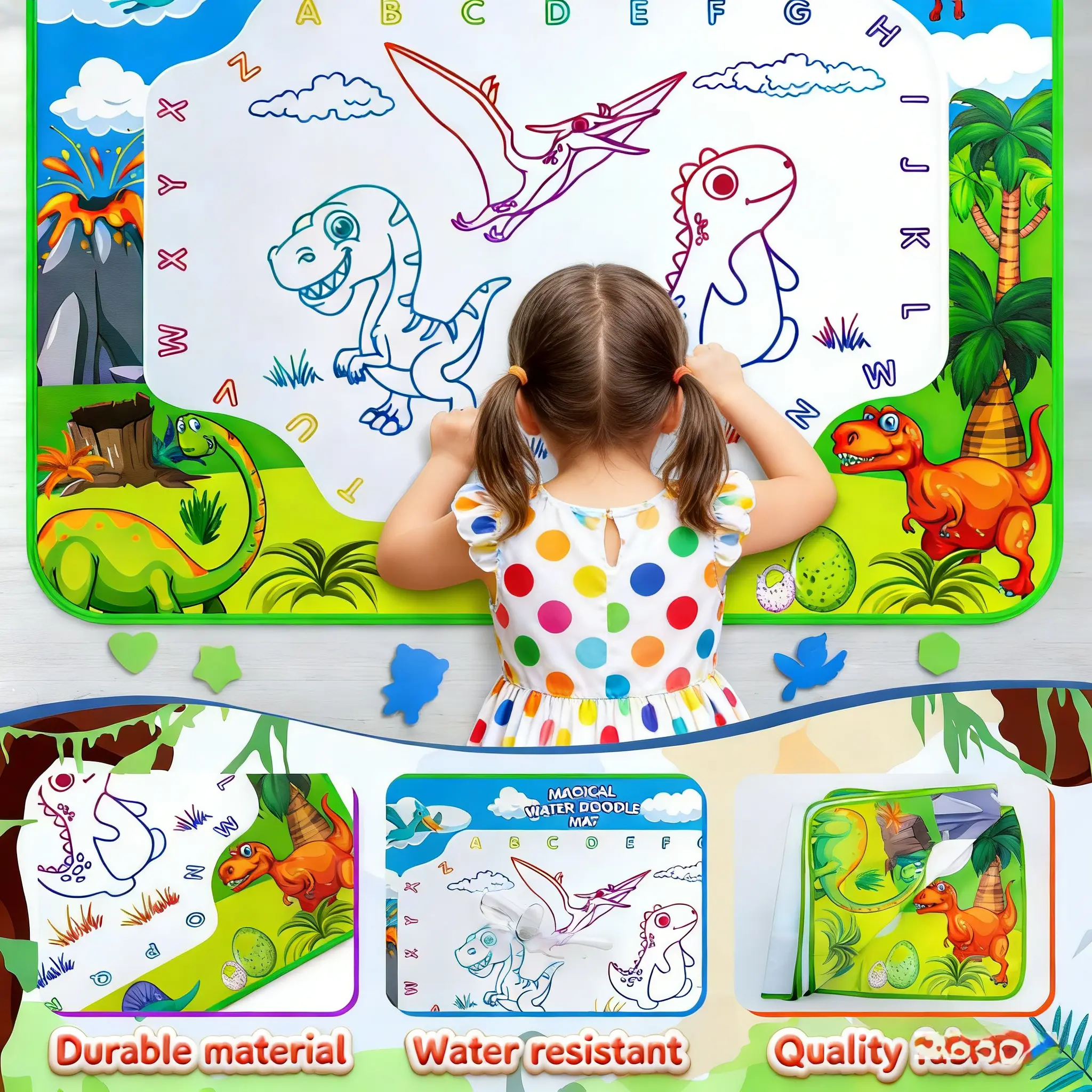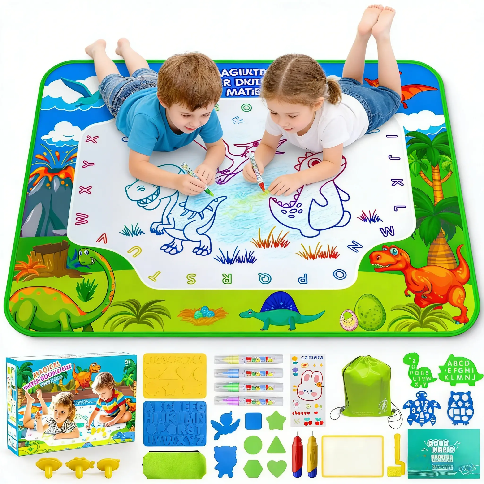Water Doodle Mat, 40 x 32 Inch Mess Free Drawing Mat, Mess Free Painting for Toddlers Age 2 3 4 5 6 7 8 Year Old, Neon Color Mat Doodle Board Writing Drawing Toys Holiday Christmas Birthday Gifts,Educational Toy for 3 4 5 6 7 8 Years Old Boys Girls