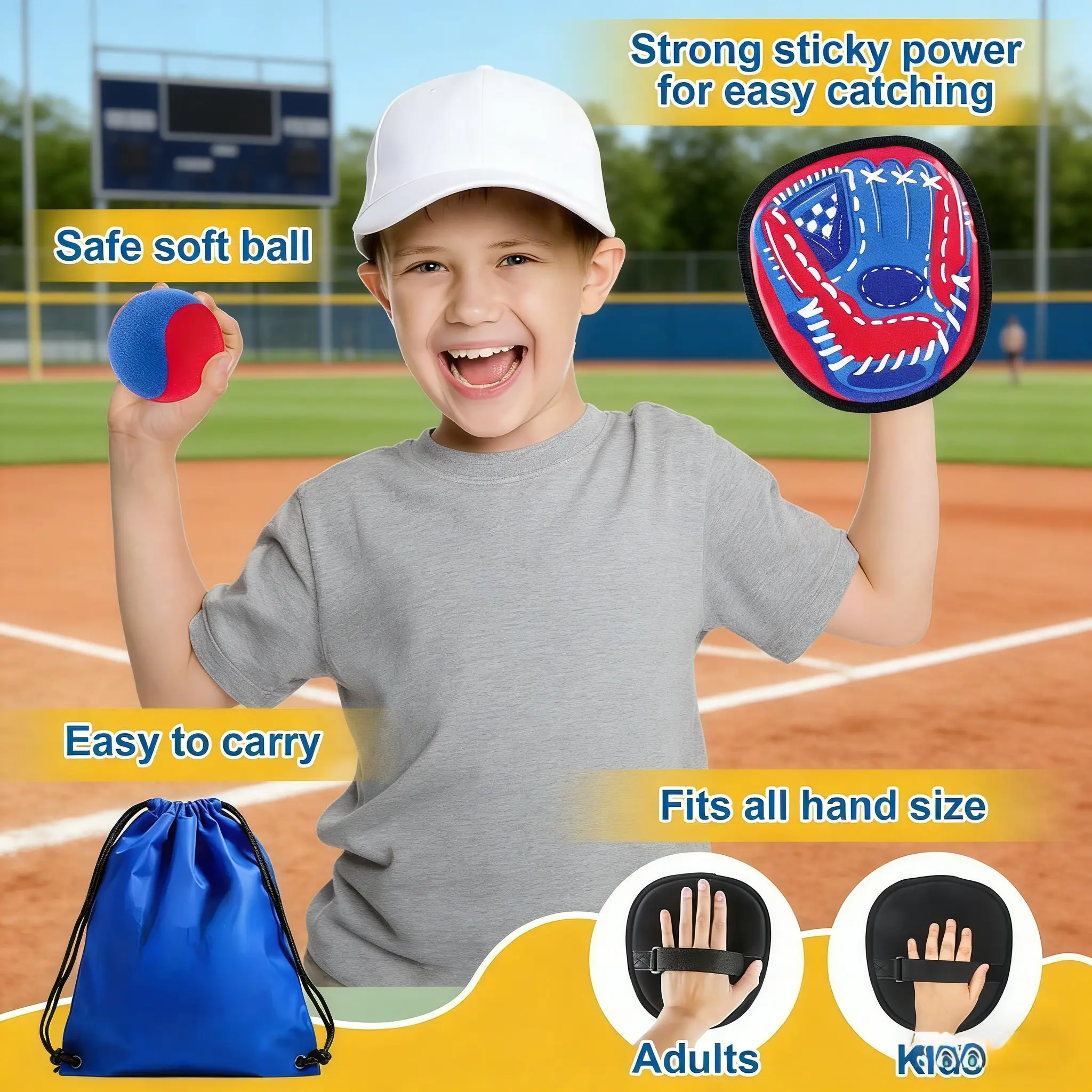 Beginner Toddler Baseball Training Glove Sticky Ball Catch Toys,Baseball Gift for Boys Girls Ages 3-12,Toss and Catch Ball Set Outdoor Games for Kids,, Beach Pool Yard Games Toys for Kids and Family