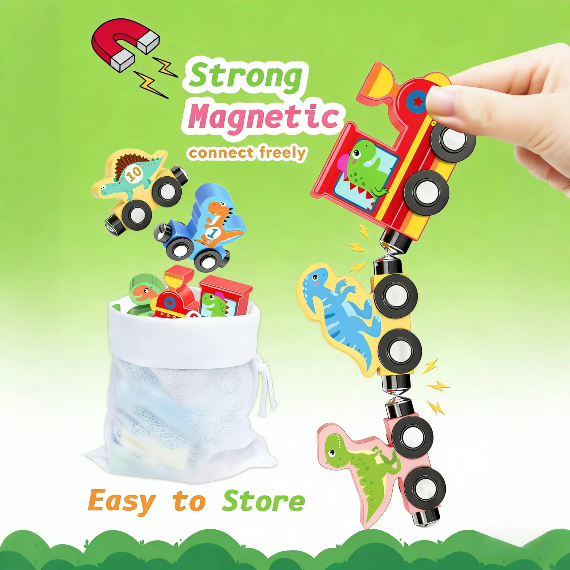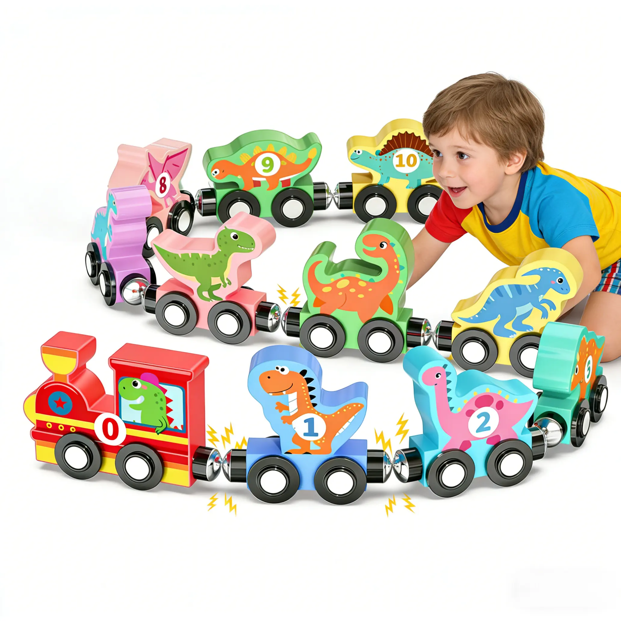 Toys for Toddlers,Magnetic Train Track Set with Animal and Digital Designs for 1 2 3 Years Old Toddlers Boys Girls, Wooden Dinosaur Preschool Learning Easter Basket Stuffers Sensory Toys Birthday Gifts Ages 1-3, 2-4