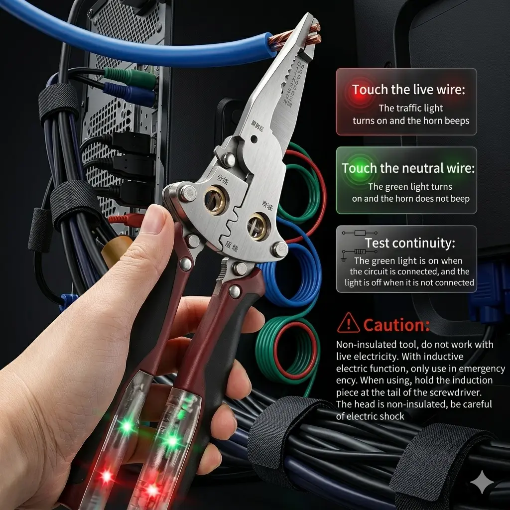 ·SMART SAFETY: Integrated Voltage Tester & Breakpoint Monitor for instant detection of live wires and hidden breaks.