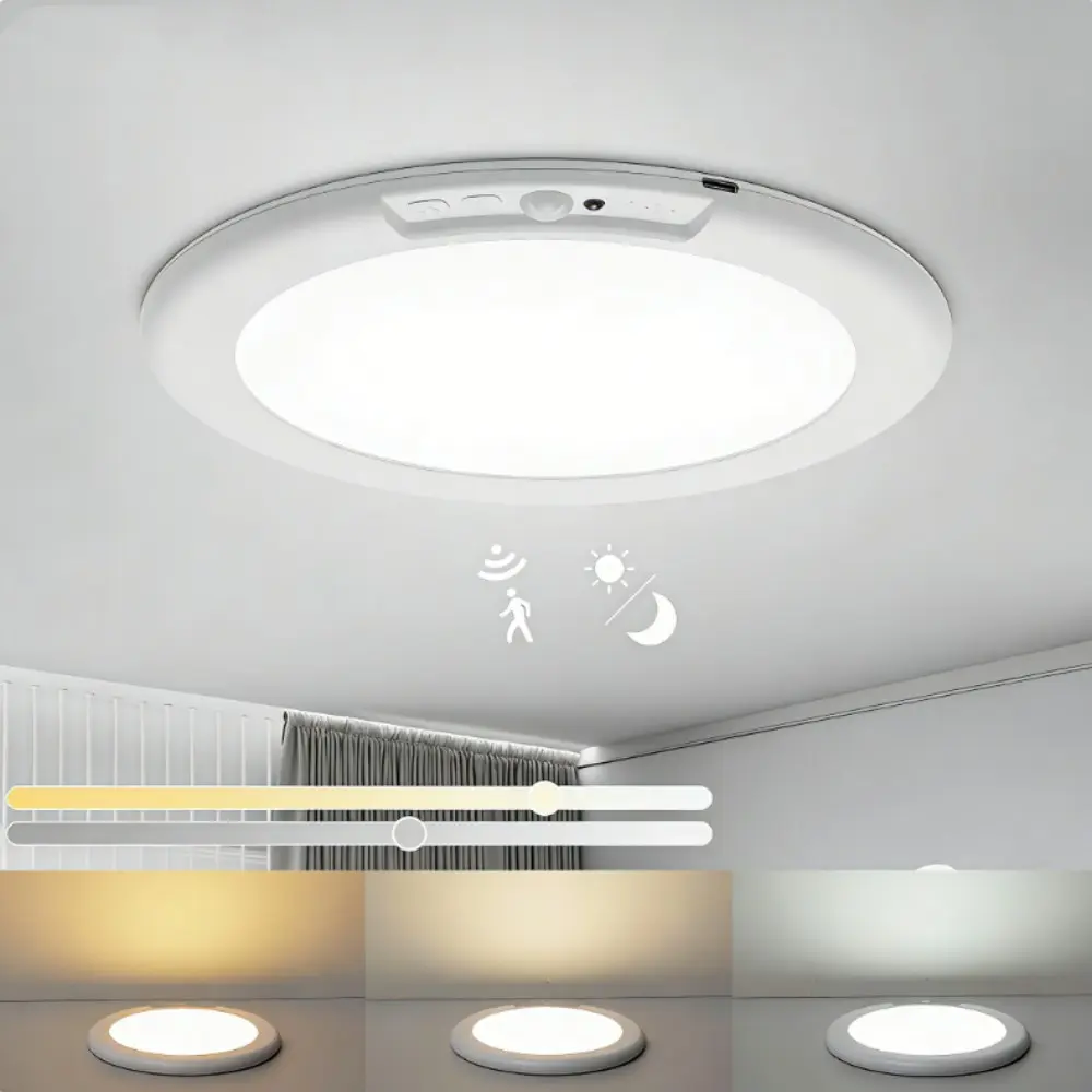1pc/2pc/4pcs Charging Ceiling Light, Wireless Installation, Motion Sensor, Remote Control, 3-Color Dimming, 8000mah Battery, for Bedroom, Hallway, Staircase, Bathroom