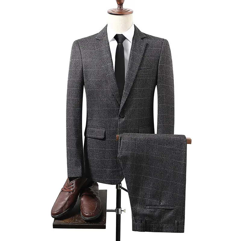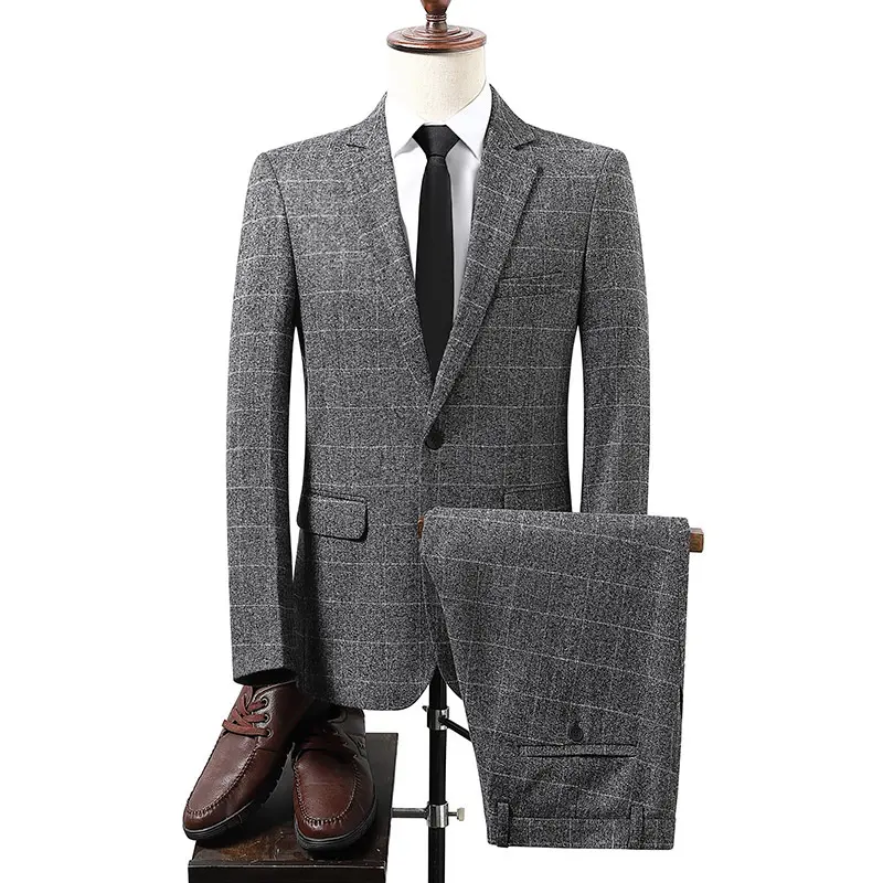 This men's plaid slim fit suit features a classic plaid pattern, Korean style tailoring, and a single-breasted one-button closure with notch lapel. Designed with pocket detailing and a center vent, this suit is perfect for casual and everyday wear during fall and winter. The slim fit cut creates a modern, flattering silhouette, while the regular thickness fabric keeps you comfortable in cooler weather. Whether you're heading to the office, a casual meeting, or a weekend outing, this versatile suit will make you look sharp, stylish, and confident.