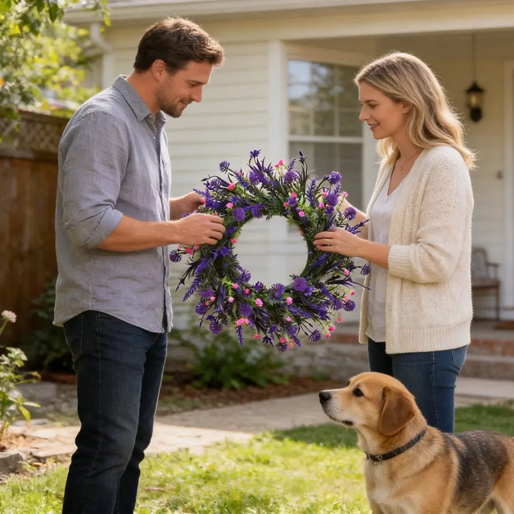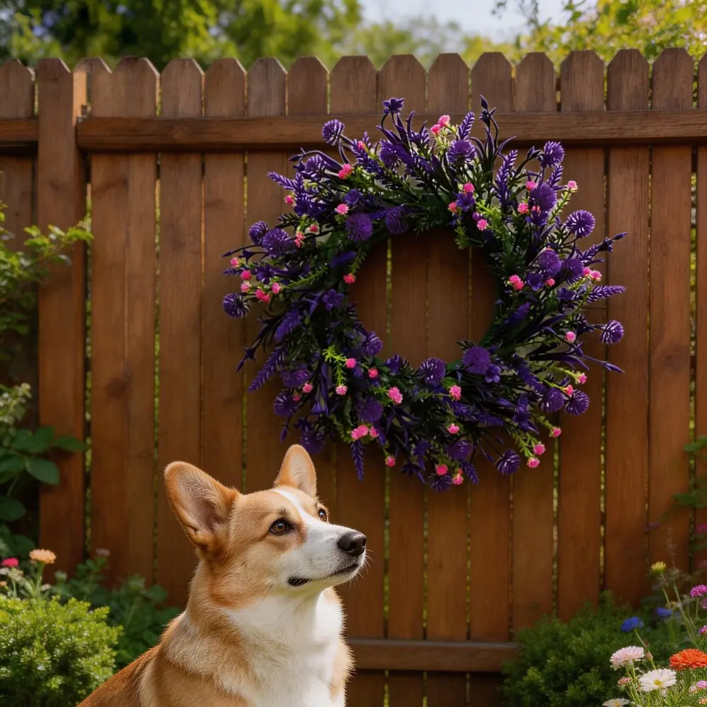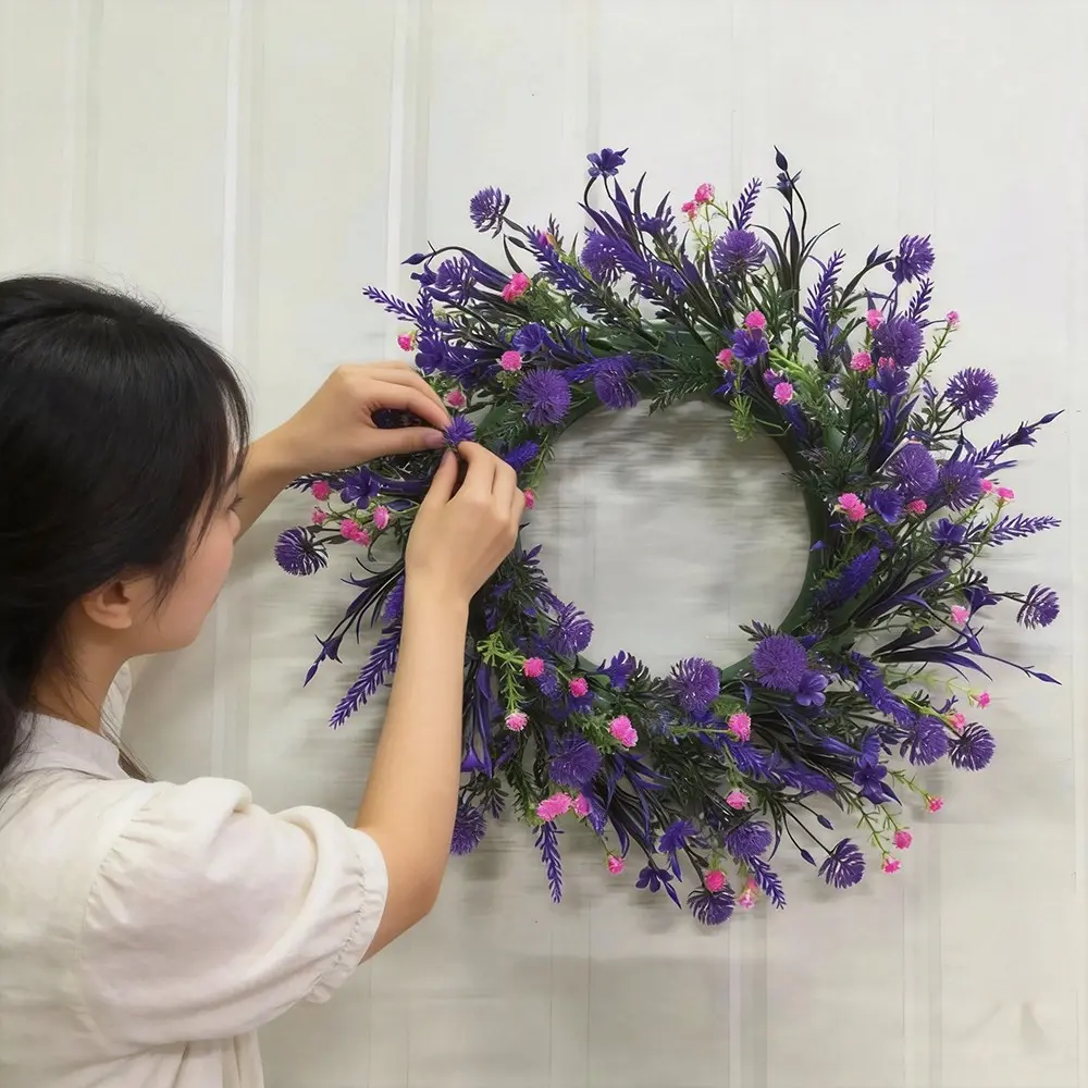 1pc Purple Lavender Dandelion Simulation Flower Wreath, Home, Outdoor, Door Wreath, Party, Mother's Day, Father's Day, Birthday Gift Wreath, Summer and Autumn Wreath, Garden, Doors and Windows, Staircase Decoration