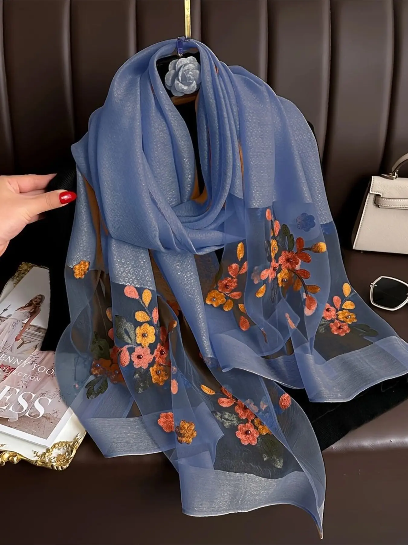 Floral Embroidery Scarf, Fashionable Soft Comfortable Shawl for Women & Girls, Casual Versatile Scarf for Daily Wear